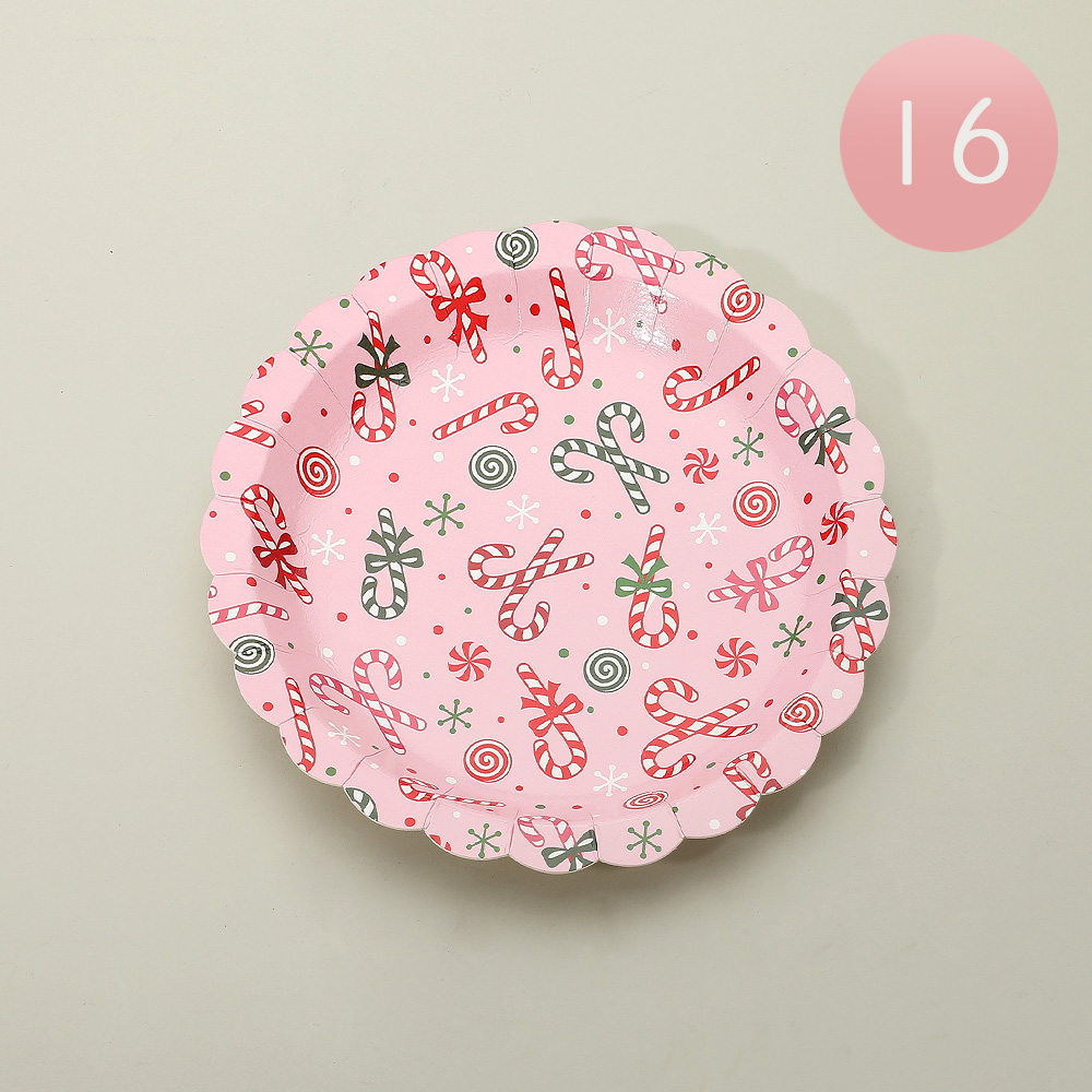 16PCS - Holiday Candy Cane Pattern Print Small Paper Plates
