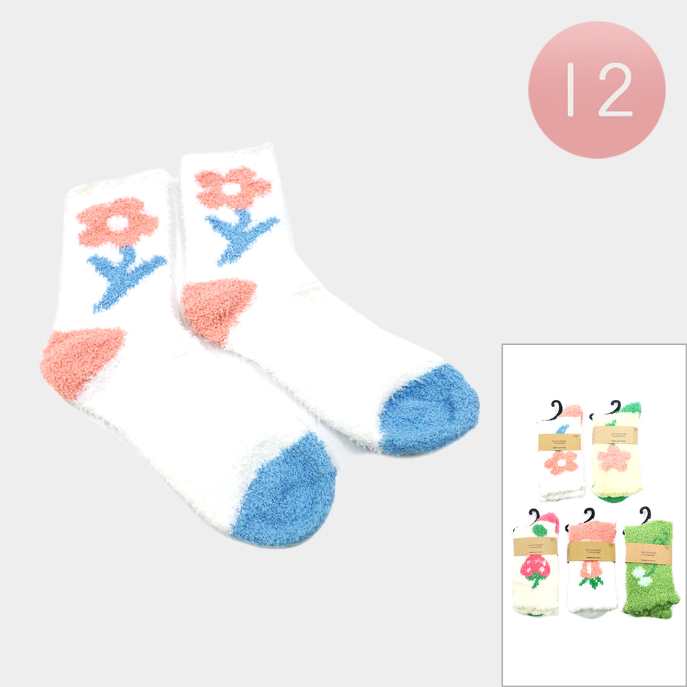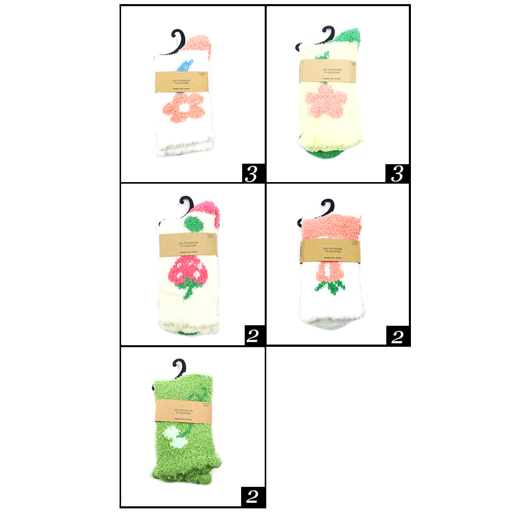 12Pairs - Flower Printed Warm Cozy Socks