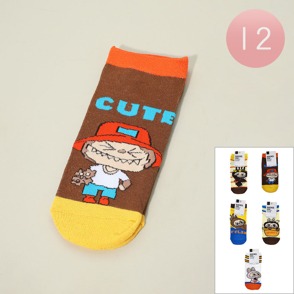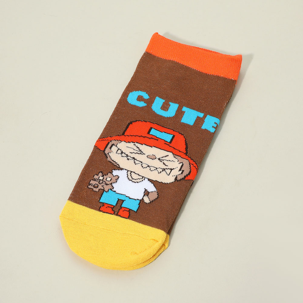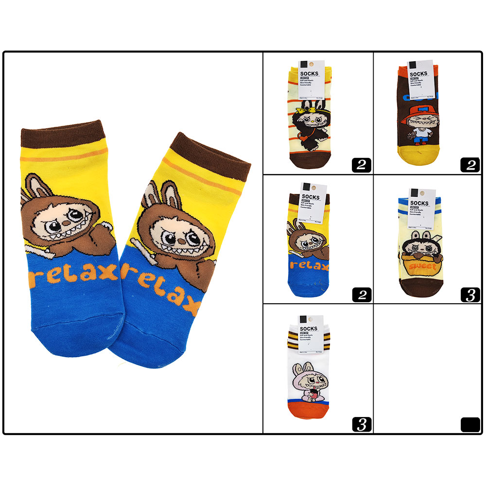 Details • Size : 9 - 11 • Playful ankle socks featuring a cartoon character design with bold details that bring a fun touch to casual outfits. Soft, lightweight, and breathable, these socks are ideal for daily wear, offering comfort and durability while adding a unique, expressive style for kids and adults alike.