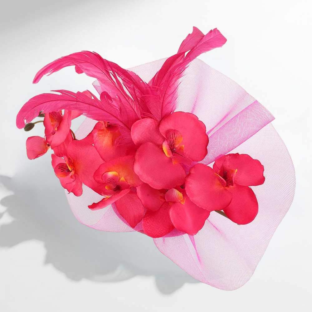 Feather Accent Mesh Floral Fascinator Hair Clip Headband