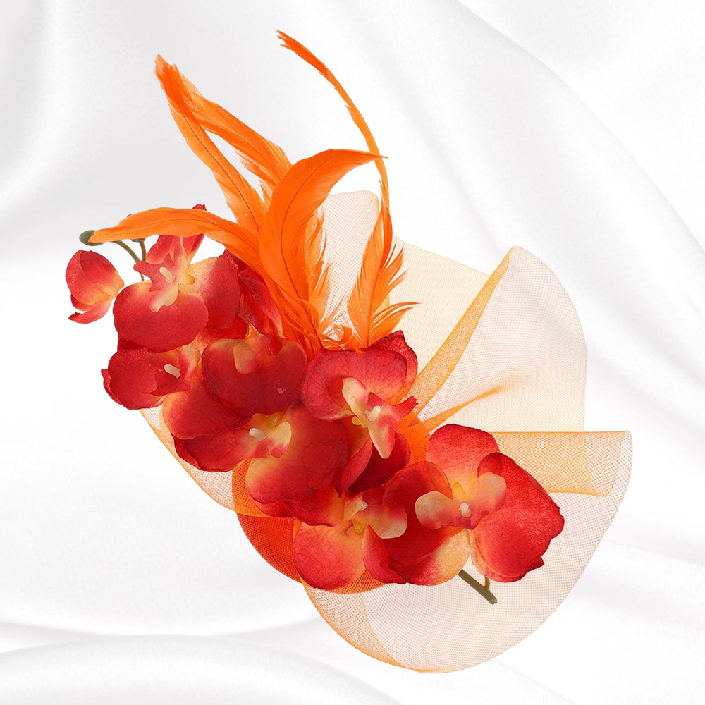 Feather Accent Mesh Floral Fascinator Hair Clip Headband