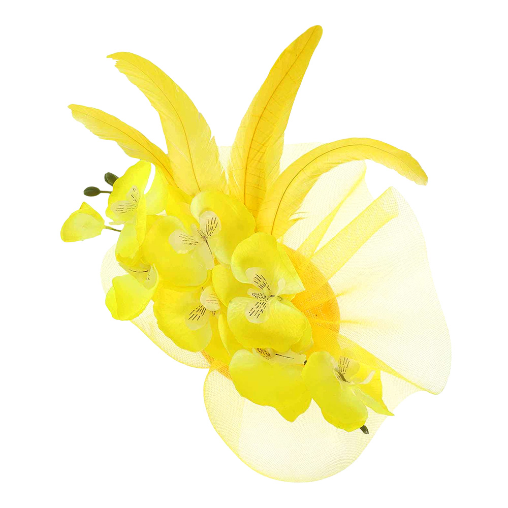 Feather Accent Mesh Floral Fascinator Hair Clip Headband