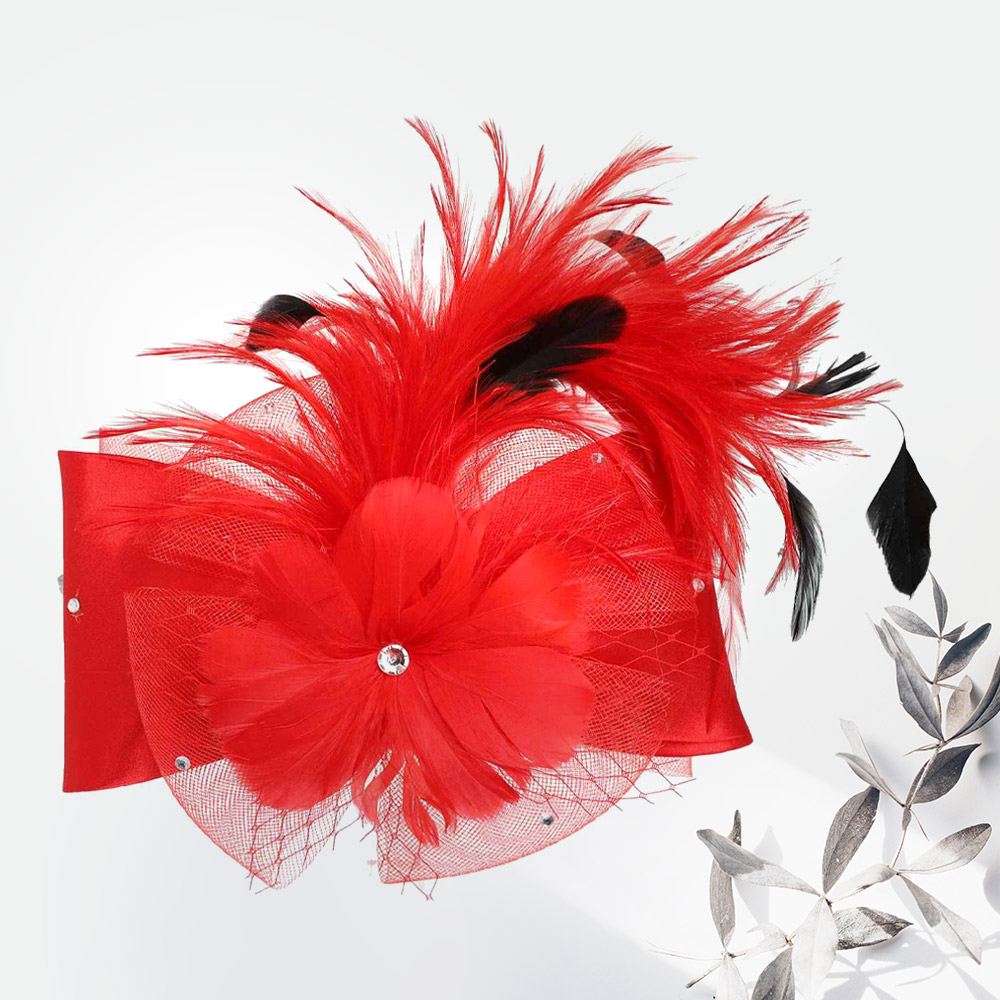 Flower Bow Mesh Feather Pointed Fascinator / Hat