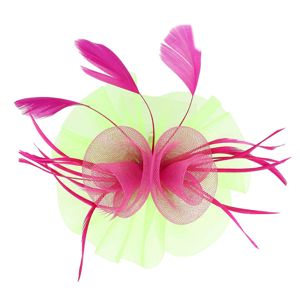 Details • Size : 7" X 7" • Dual : Hair Pinch Clip / Headband • Elevate your look with this layered feather and mesh fascinator headband. Featuring graceful loops and soft feathers, it adds an elegant and playful touch, perfect for weddings, cocktail events, or festive celebrations.