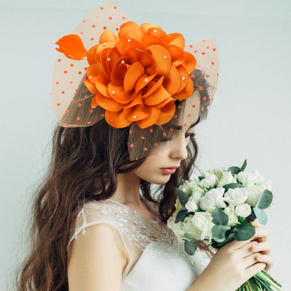 Pearl Embellished Flower Feather Veil Fascinator / Headband