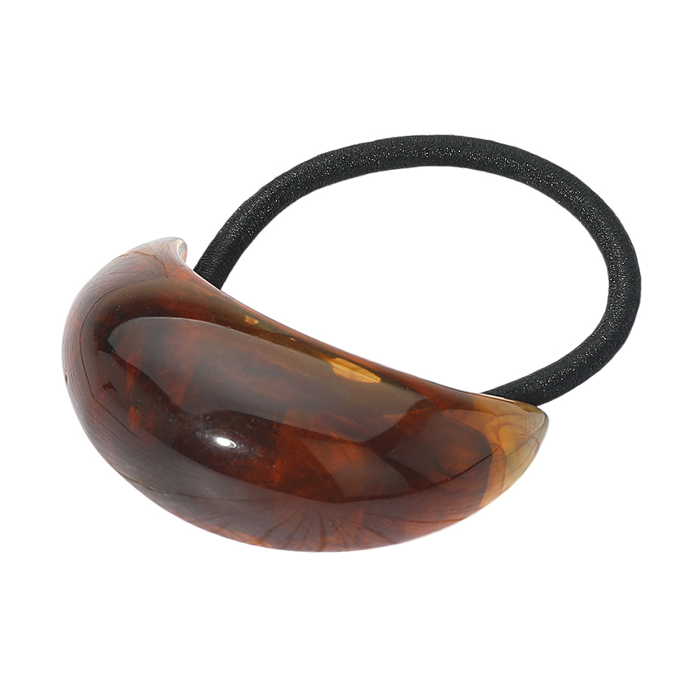 Details • Size : 0.75" H • Stretchable • Elevate your look with this curved resin accent hair tie, crafted with a sleek polished finish. The strong elastic band ensures a secure and comfortable hold, while the modern design adds a refined touch to ponytails, buns, and other everyday hairstyles.