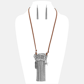 Faux Leather Tip Textured Open Metal Rectangle Earrings