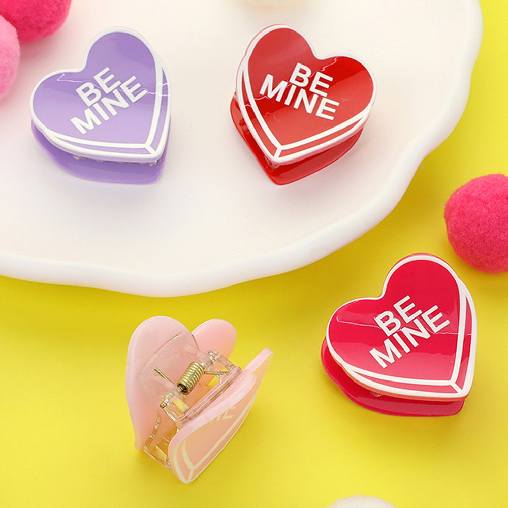 4PCS - BE MINE Message Acetate Heart Hair Claw Clips