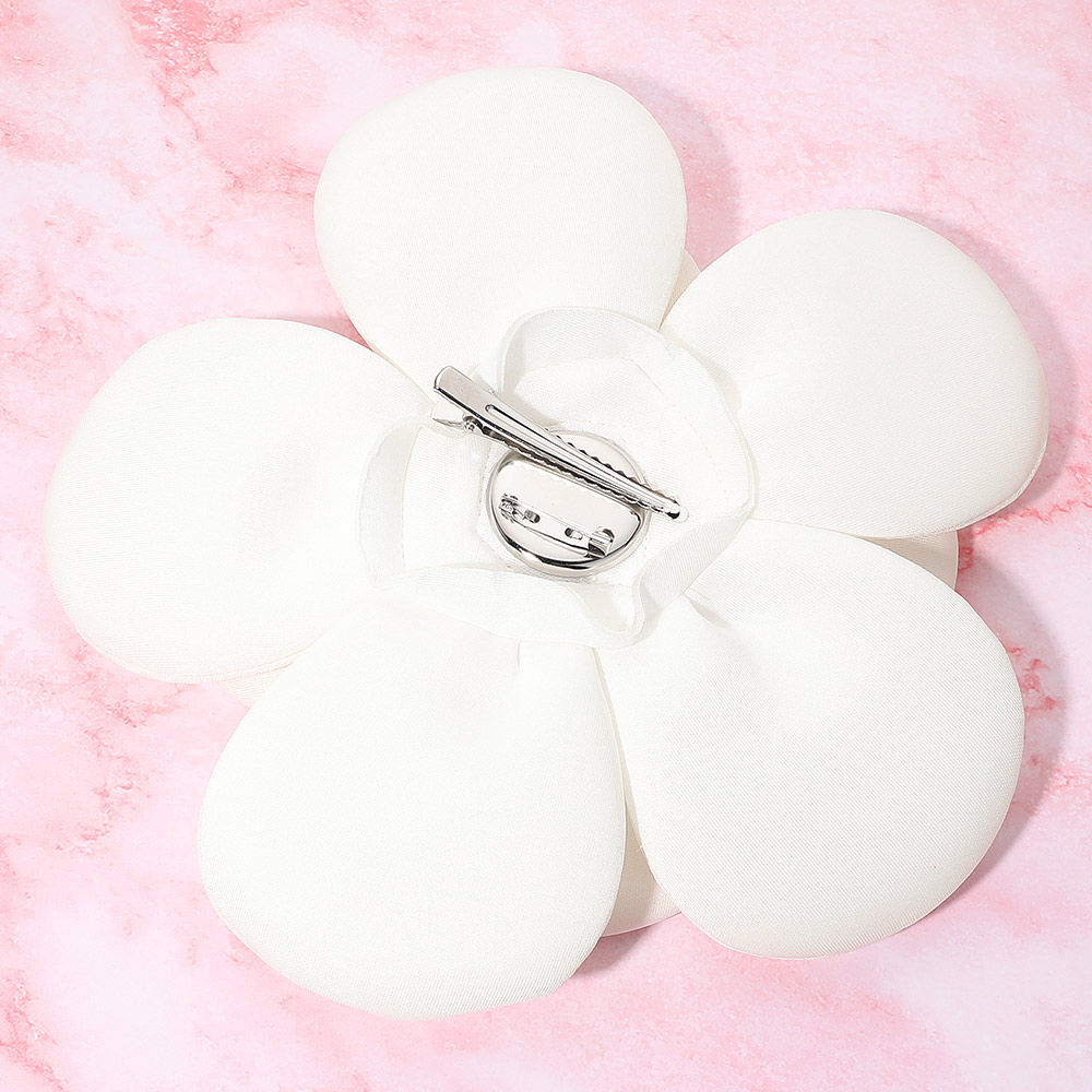 Details • Size : 8.75" X 8.75" • Dual : Pin Brooch / Hair Clip • Add elegant flair to any look with this versatile floral accessory featuring soft, dimensional petals and a dual-function backing for use as a hair clip or brooch. Its sculpted design brings a refined, feminine touch, perfect for styling with everyday outfits or special-occasion ensembles. • Lead and Nickel Compliant
