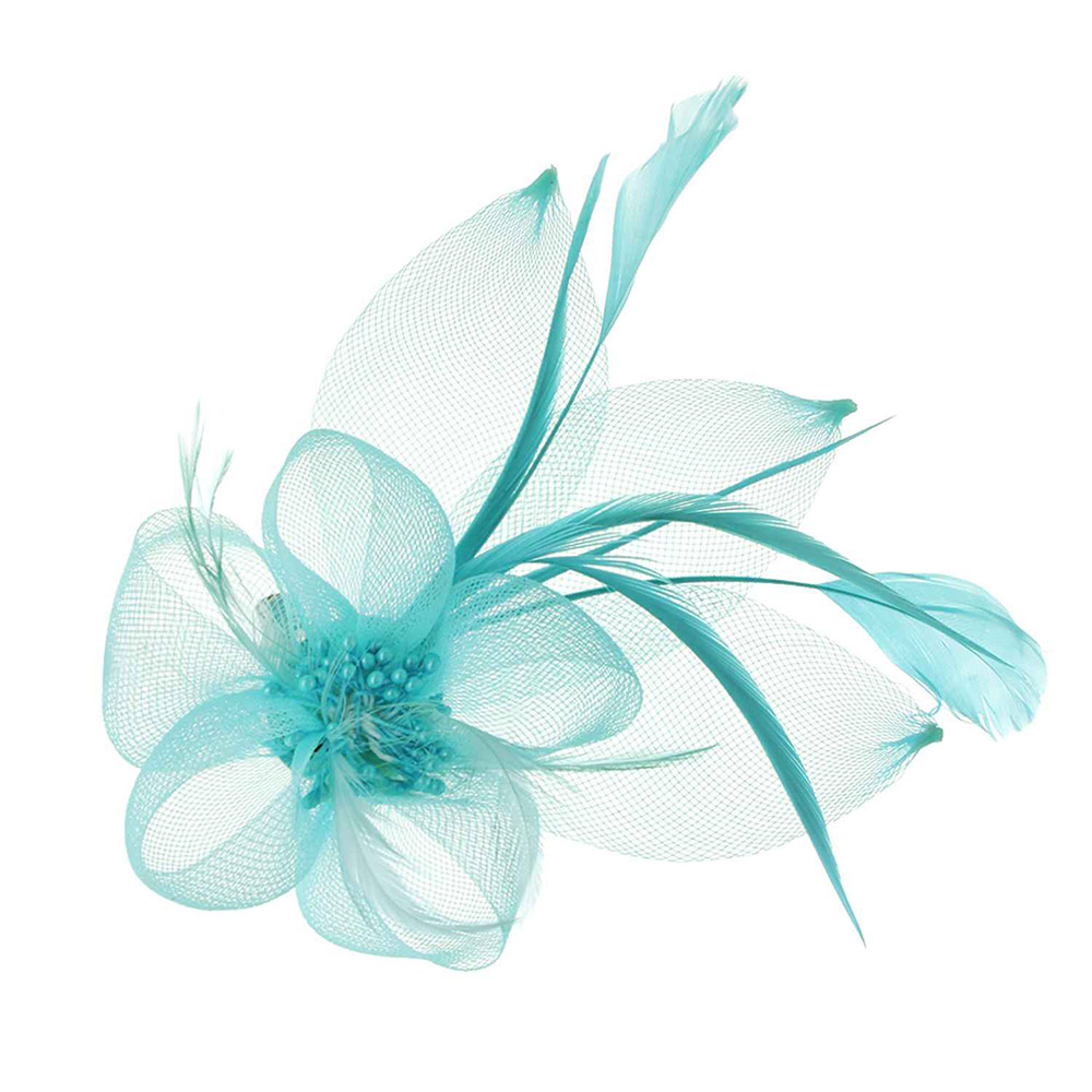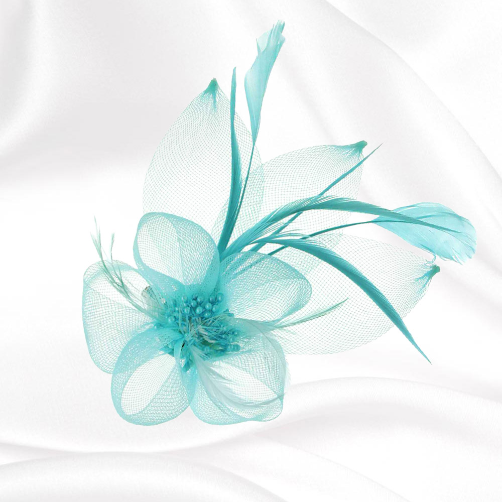 Feather Mesh Flower Hair Pinch Clip Brooch
