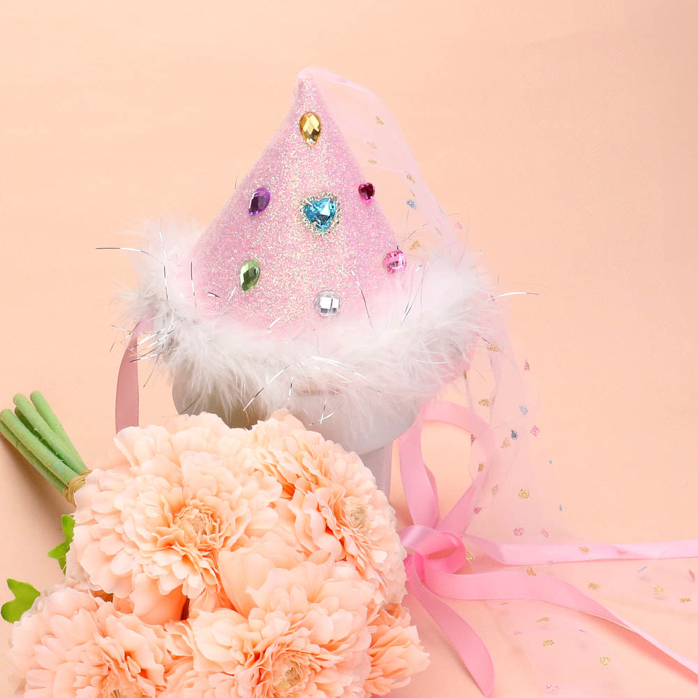 Heart Stone Cluster Pointed Glittered Birthday Feather Hat Hair Clip