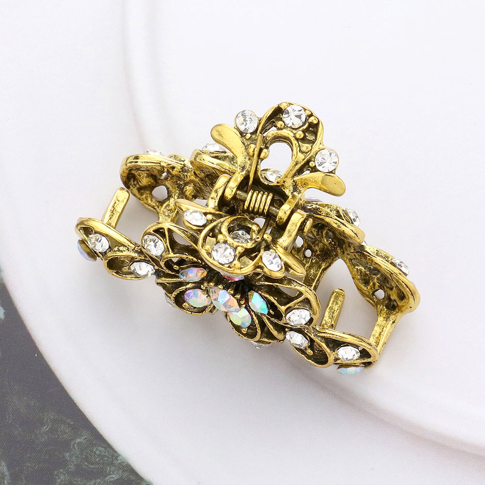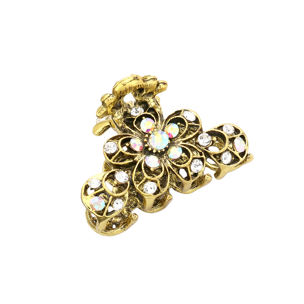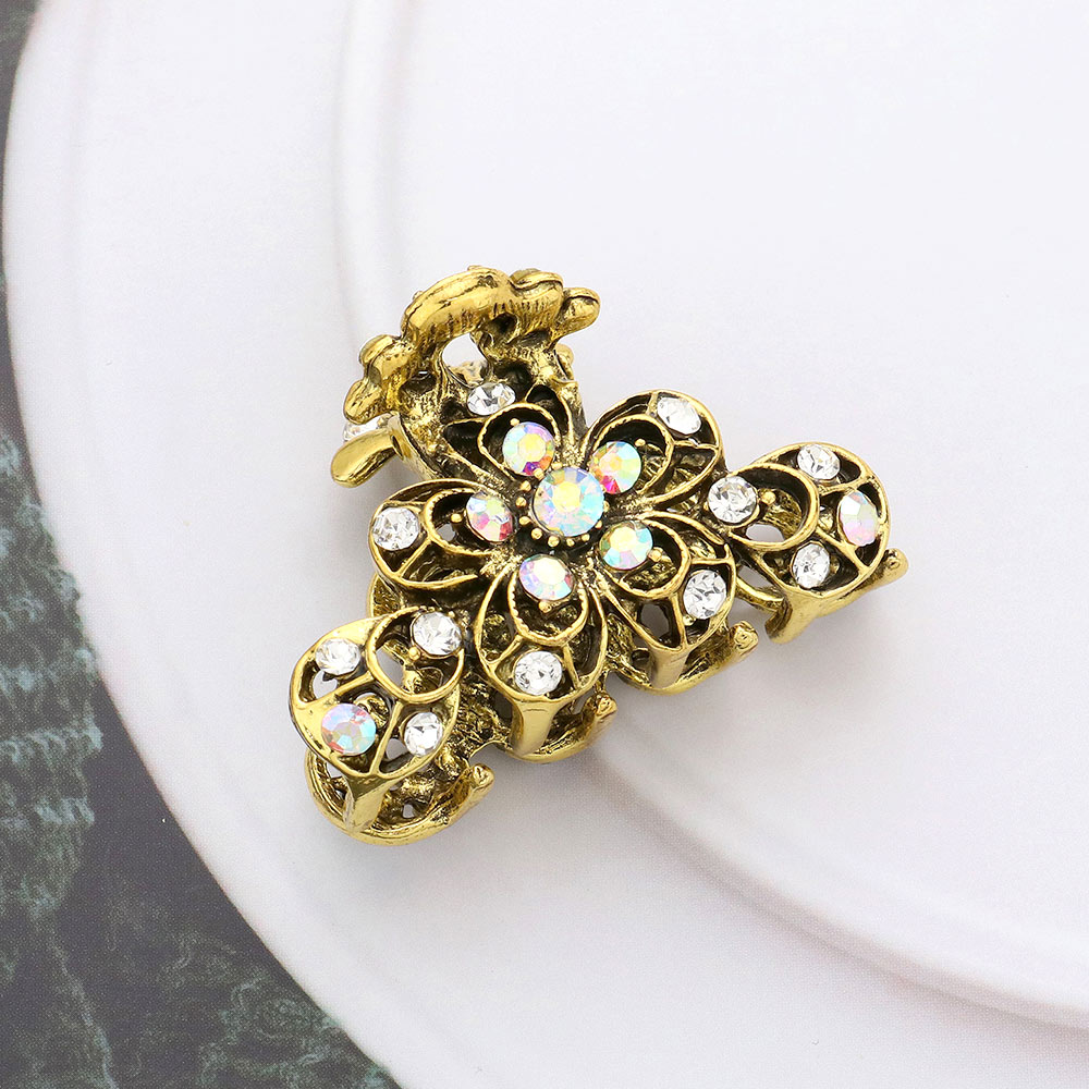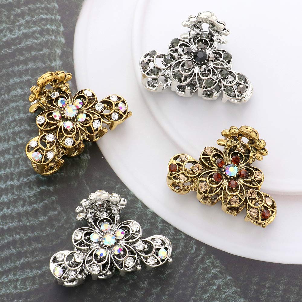 Stone Embellished Flower Accented Hair Claw Clip
