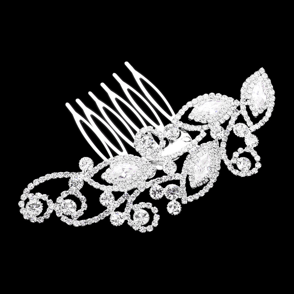 Details • Size : 3.8" X 1.3" • Chic floral crystal hair clip featuring delicate flower and leaf accents, perfect for weddings, parties, or elegant events. Adds sparkle and sophistication to updos, creating a timeless and graceful look. • Lead and Nickel Compliant • CZ Cubic Zirconia