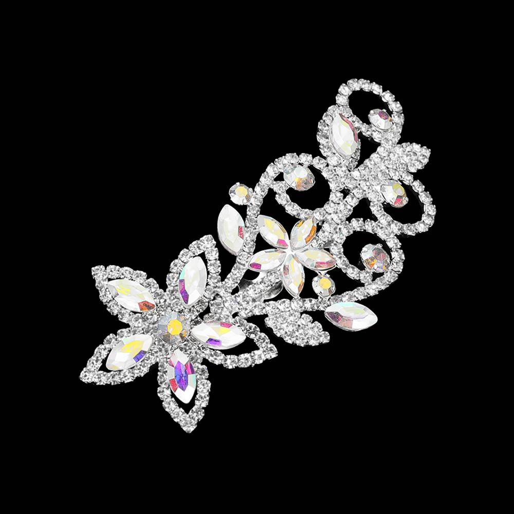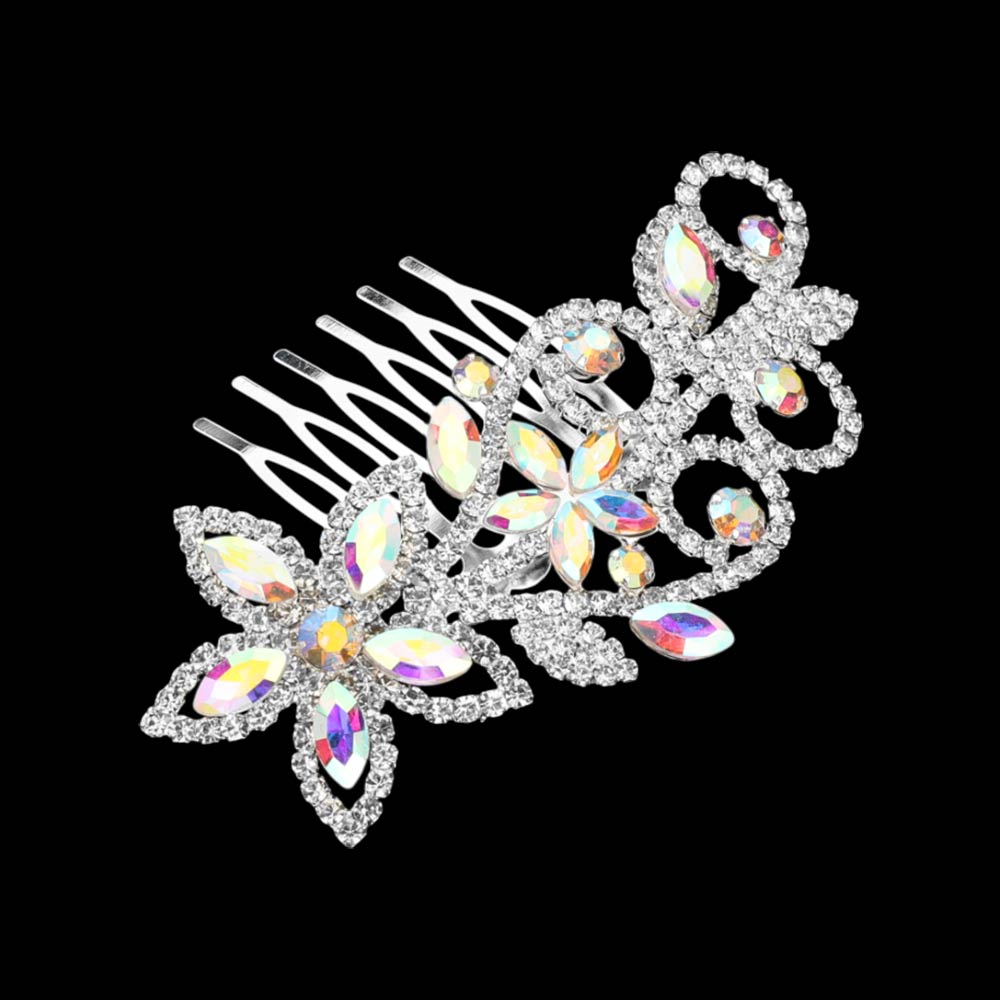 Marquise Stone Cluster Rhinestone Pave Floral Hair Comb