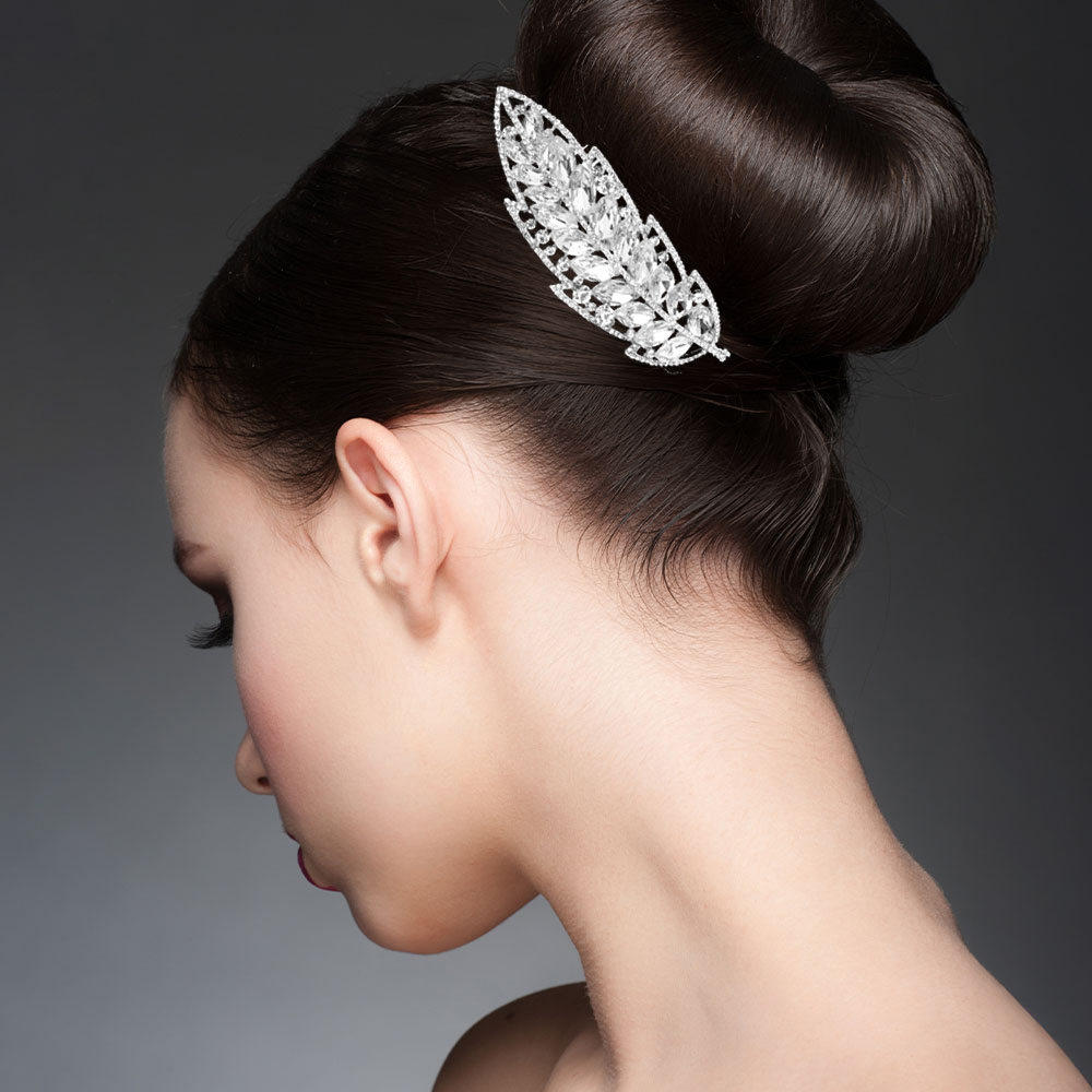 • This crystal leaf hair comb brings natural elegance and radiant sparkle to any hairstyle. Adorned with shimmering stones arranged in a graceful leaf pattern, it’s perfect for weddings, formal events, or evening occasions. A luxurious accessory that adds refined beauty and timeless charm.