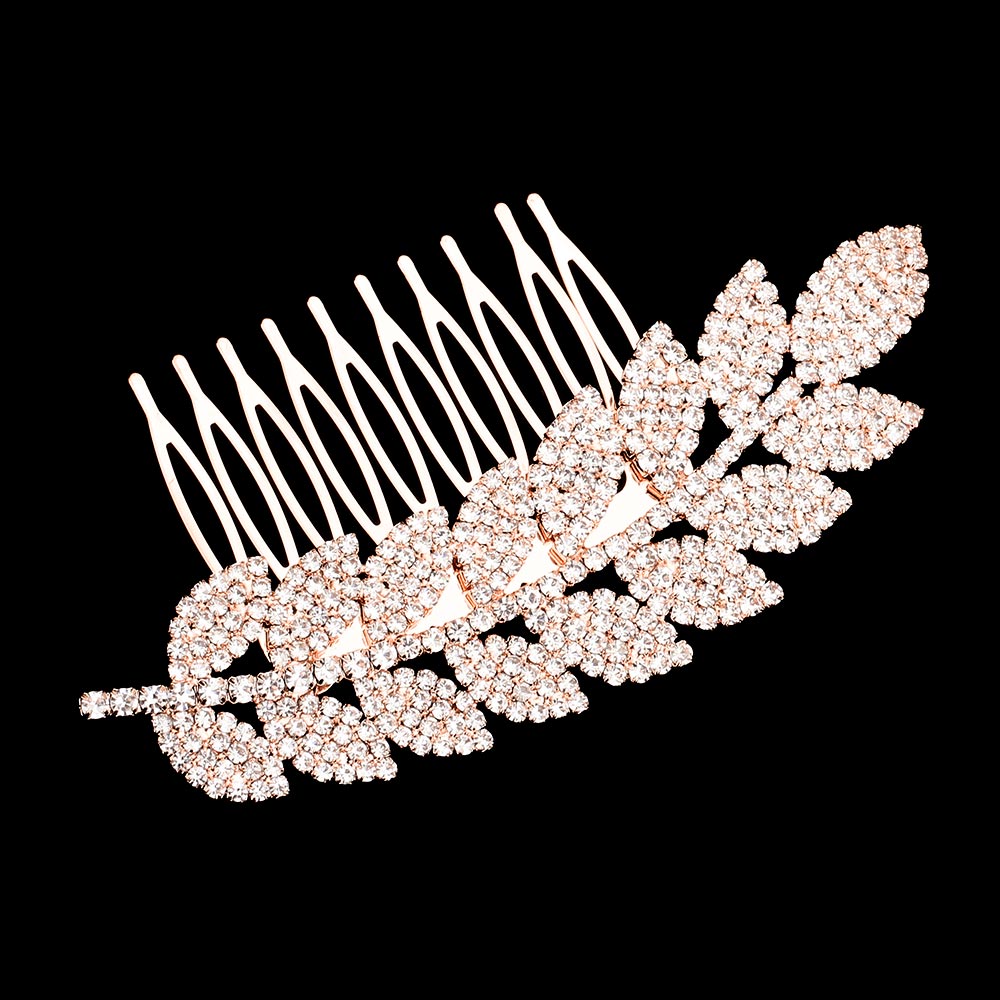 Details • Size : 4" X 1.25" • Chic leaf design hair clip adorned with sparkling crystals, ideal for bridal updos or formal hairstyles. This stylish accessory enhances your look with refined elegance for weddings, proms, or special occasions. • Lead and Nickel Compliant
