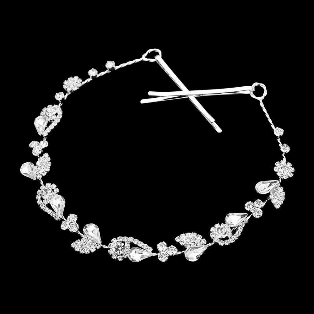 • Add shimmering elegance to any bridal or formal hairstyle with this crystal teardrop floral vine headband. Flexible and lightweight, it features sparkling accents and secure pins, making it perfect for weddings, proms, and special occasions.