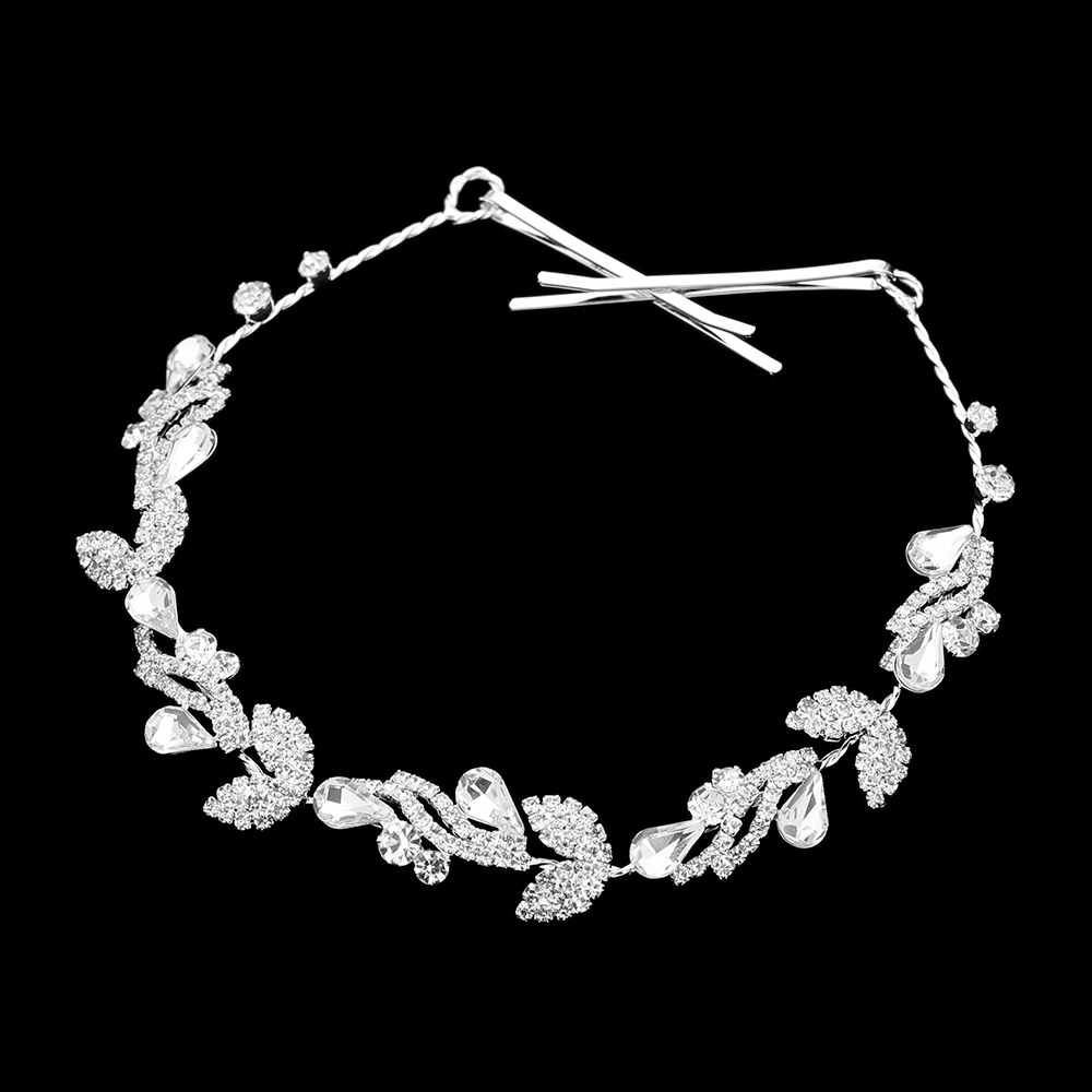 Details • Size : 11" X 0.6" • A Pair Bobbi Pin Included • Enhance any bridal or formal look with this crystal teardrop floral vine headband. Designed with sparkling rhinestones and flexible wire for easy shaping, it secures with included pins—perfect for weddings, proms, and elegant occasions. • Lead and Nickel Compliant