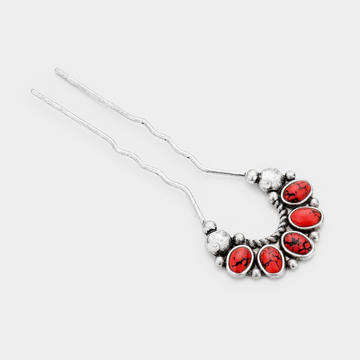 Tribal Red Coral Accented Leaf Cluster Barrette
