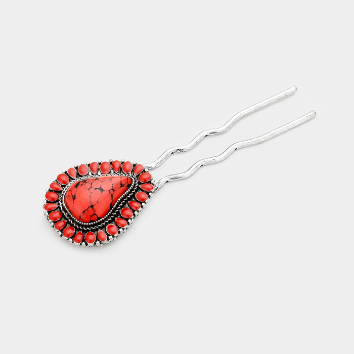 Tribal Red Coral Teardrop Hair Comb Pin
