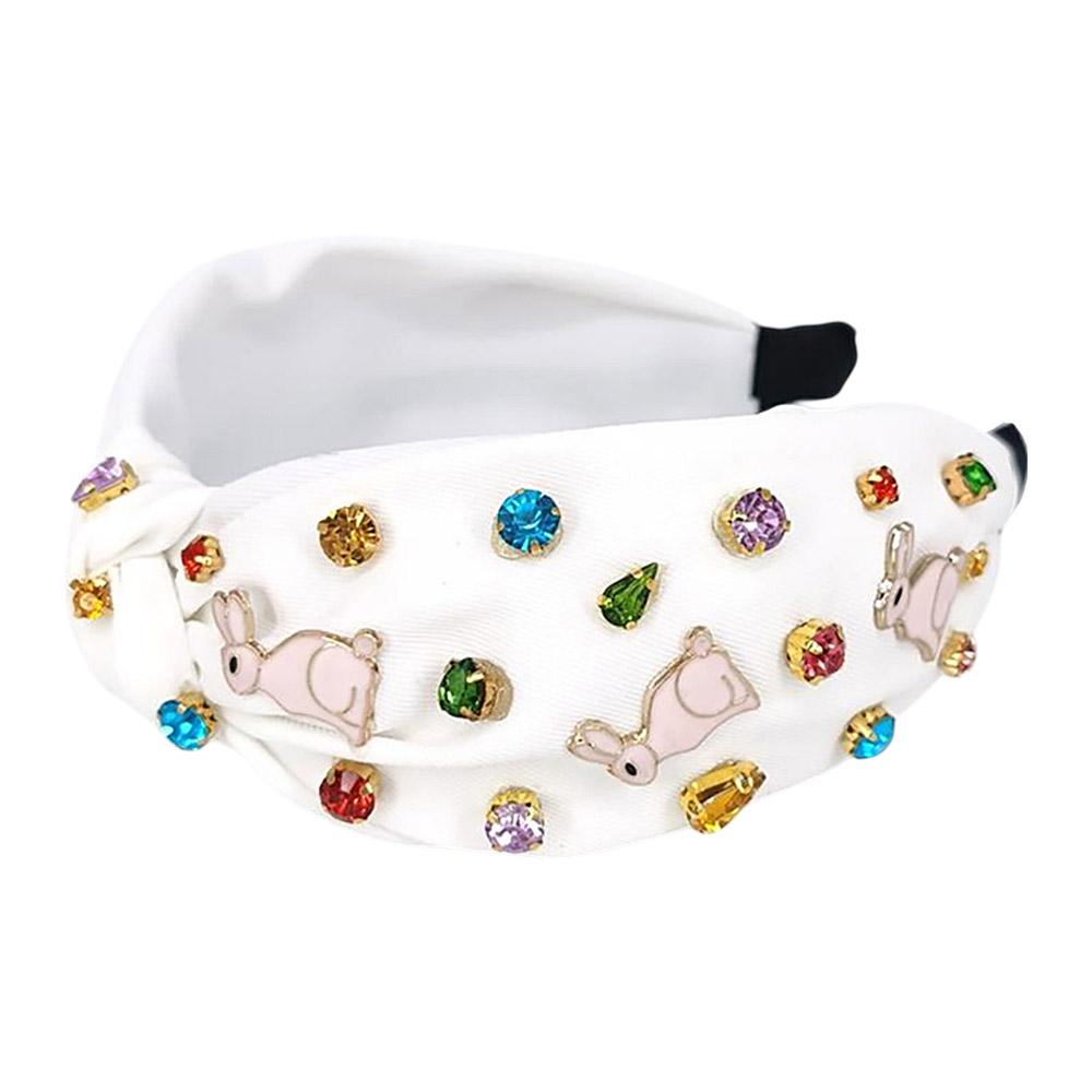 Colorful Stone Cluster Enamel Easter Bunny Embellished Knot Headband