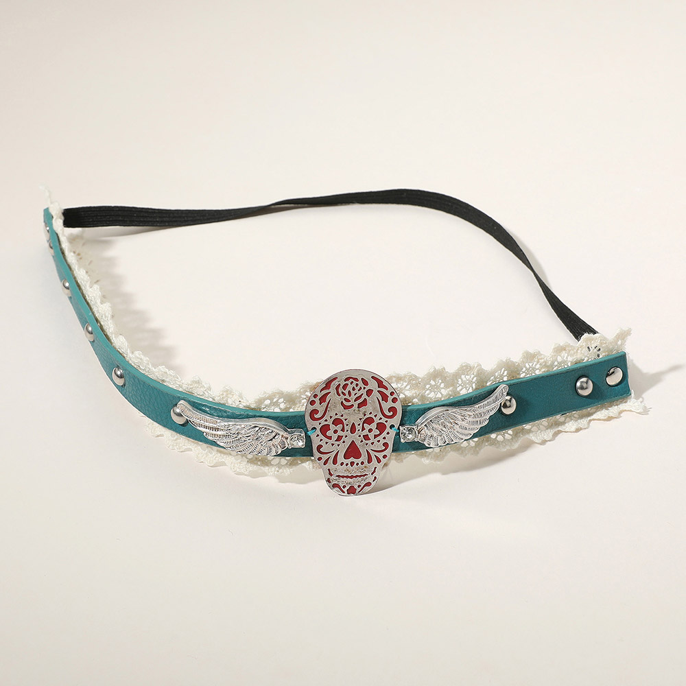 Day of the Dead Mexican Sugar Skull & Wings Faux Leather Lace Stretch Headband
