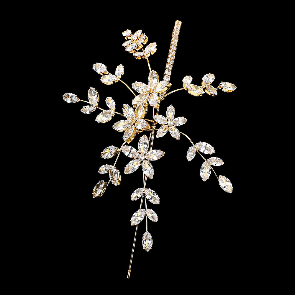 • Beautiful crystal floral hair vine featuring shimmering rhinestones and flexible branches for a custom bridal look. This lightweight wedding headpiece adds sparkle to updos and special-occasion hairstyles, creating a romantic and sophisticated finish.