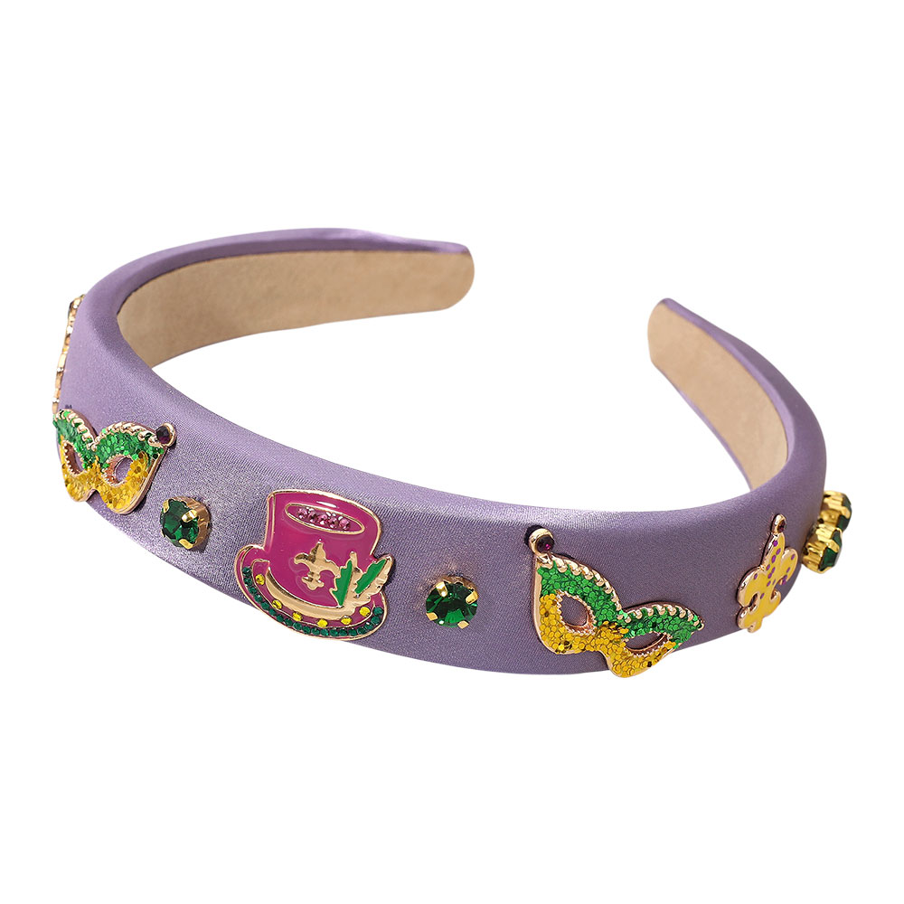 Details • Size : 1.2" H • Bring festive charm to any celebration with this embellished headband featuring lively Mardi Gras icons and sparkling accents. Designed for comfort and standout flair, it adds a playful finishing touch to parade outfits, party looks, and themed event attire.