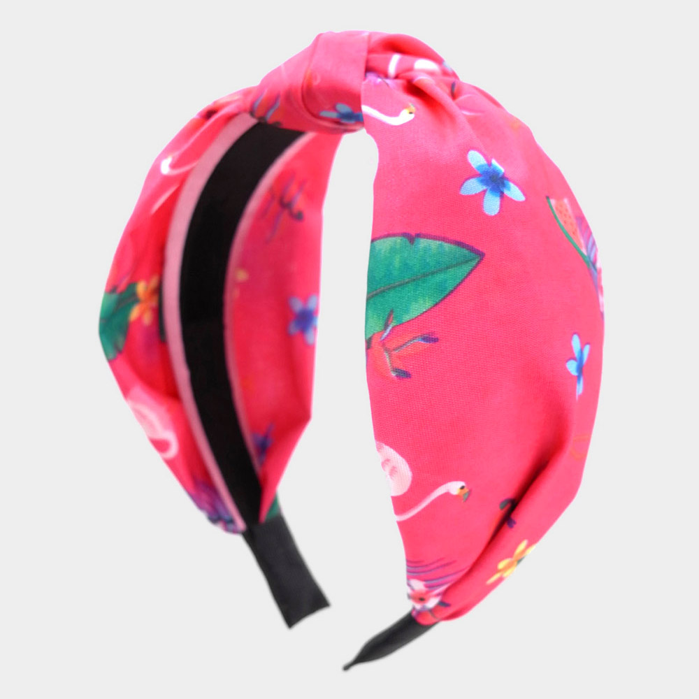 Flamingo Tropical Leaf Printed Burnout Knot Headband