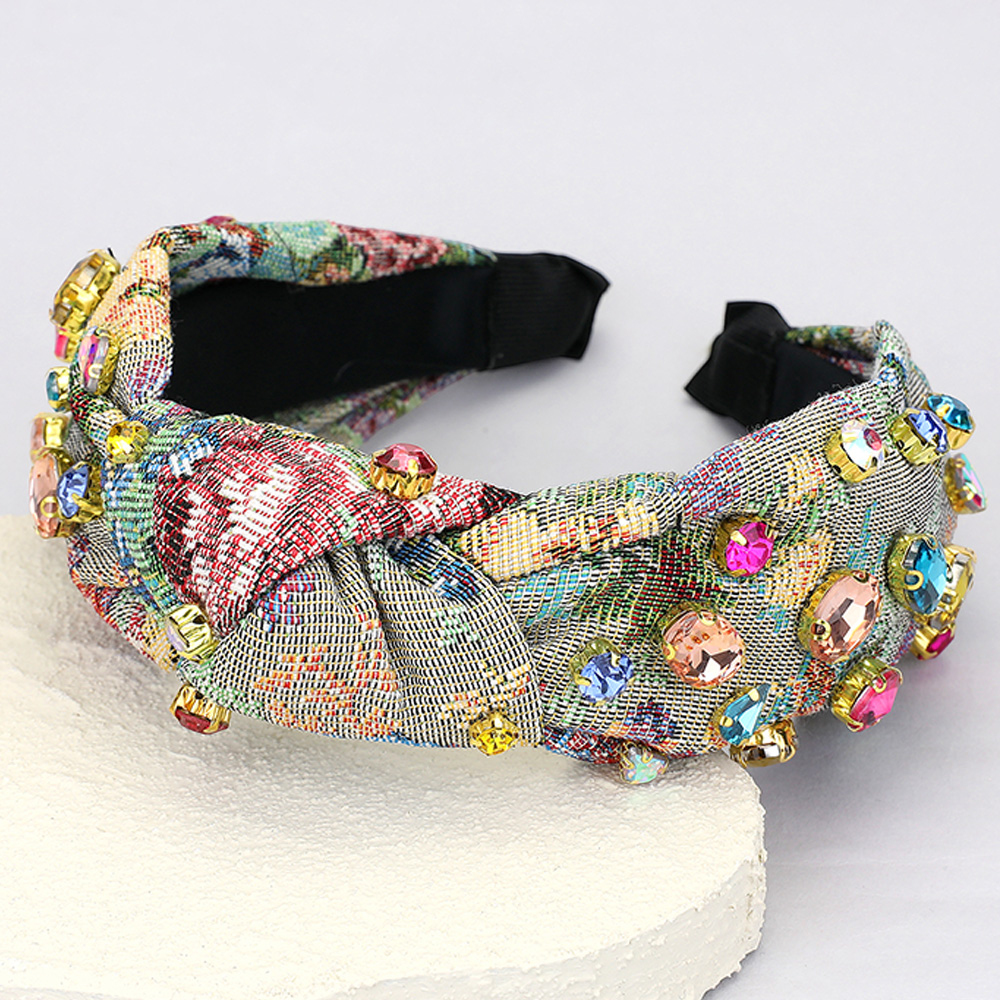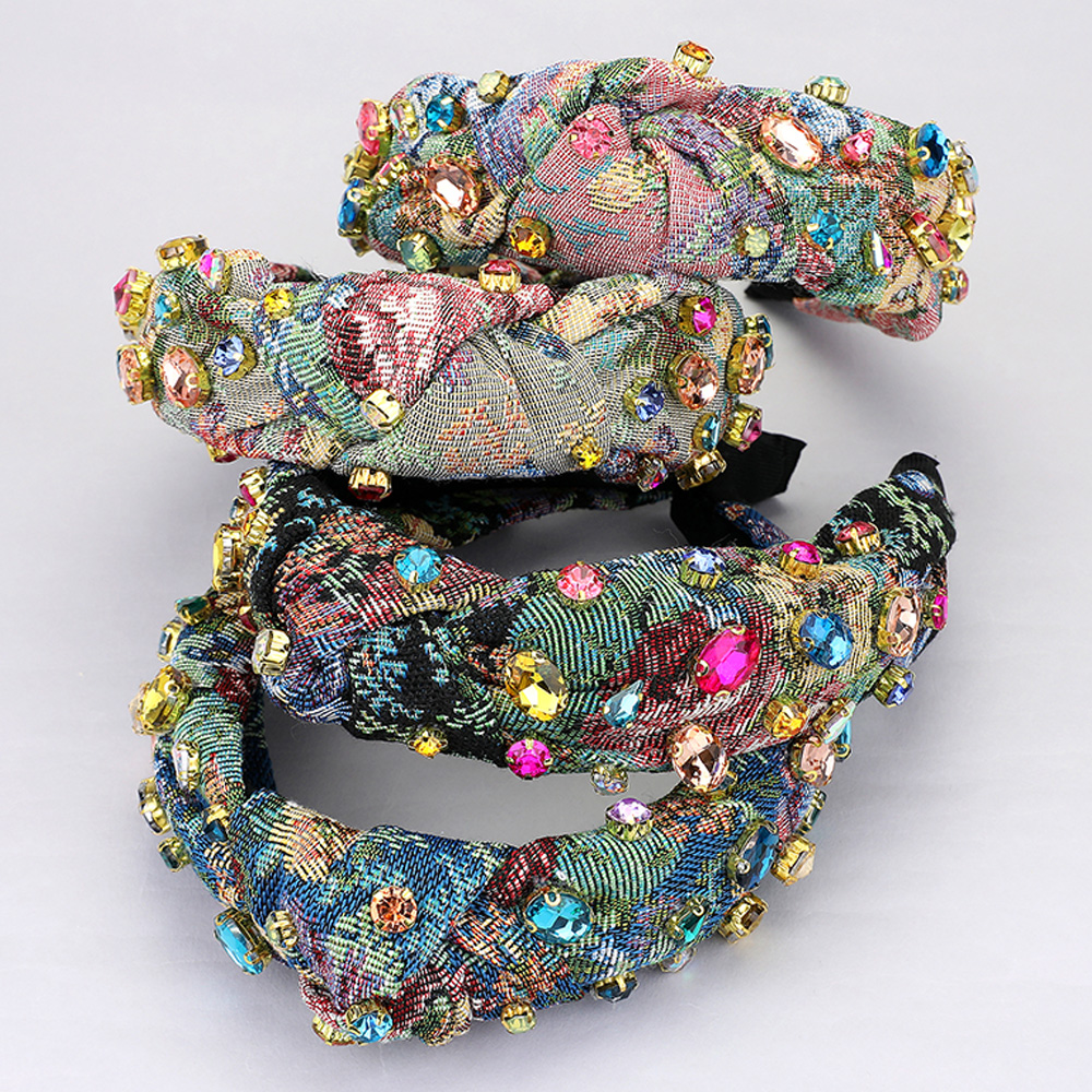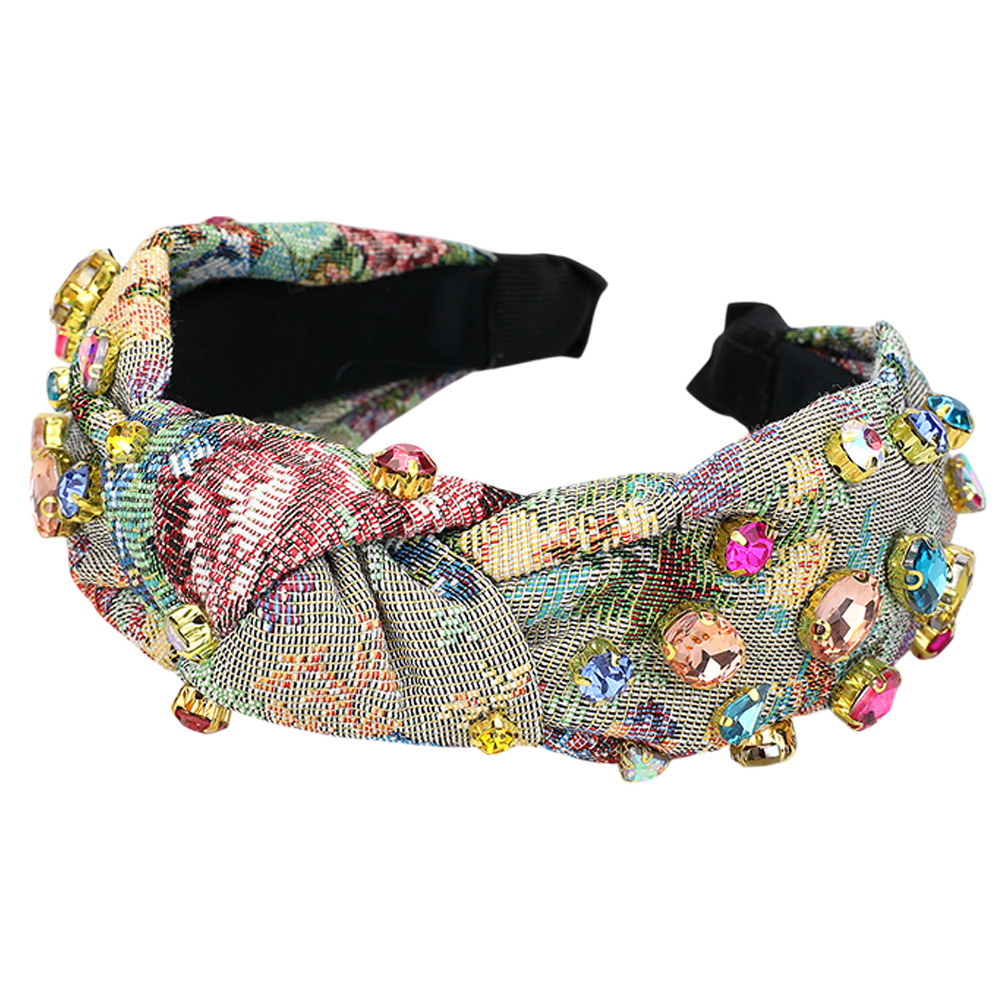 Floral Patterned Stone Cluster Embellished Knot Headband Floral Patterned Stone Cluster Embellished Knot Headband Floral Patterned Stone Cluster Embellished Knot Headband