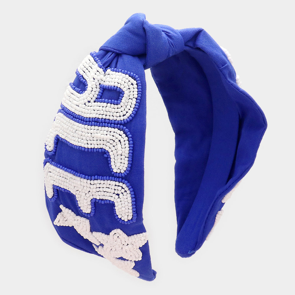 Game Day Seed Beaded ACE Message Star Knot Burnout Headband