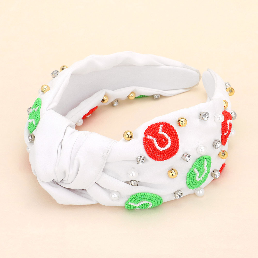 Gameday Seed Beaded Pearl Stone Cluster Embellished Knot Headband