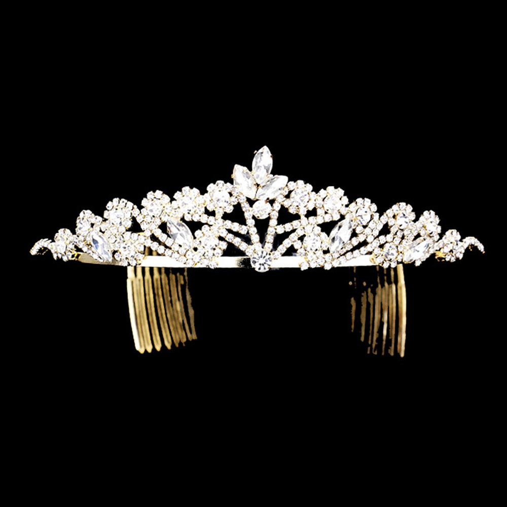 Floral Crystal Rhinestone Pave Pageant Queen Tiara