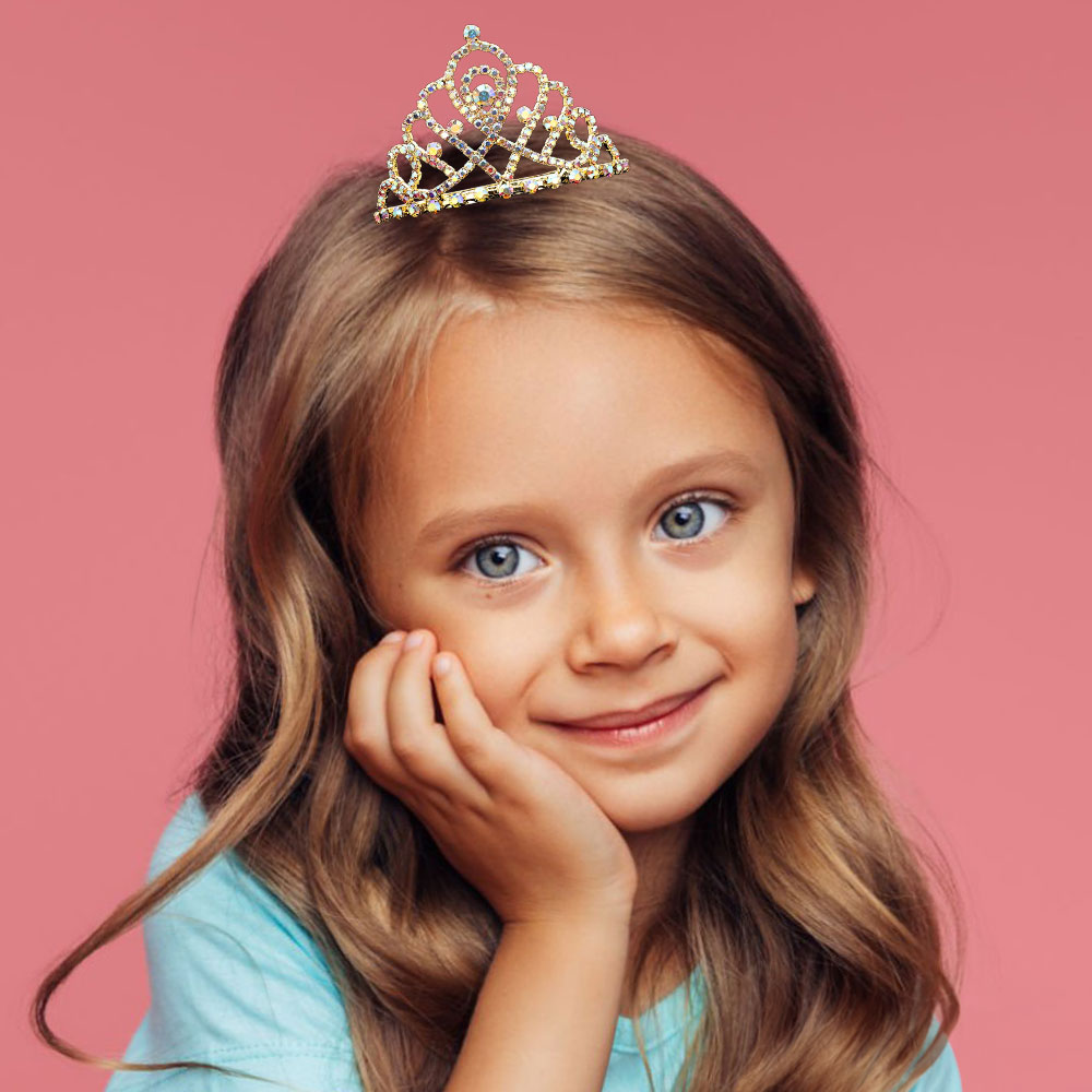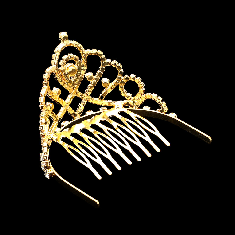 Intricate Openwork Rhinestone Paved Princess Crown Mini Tiara