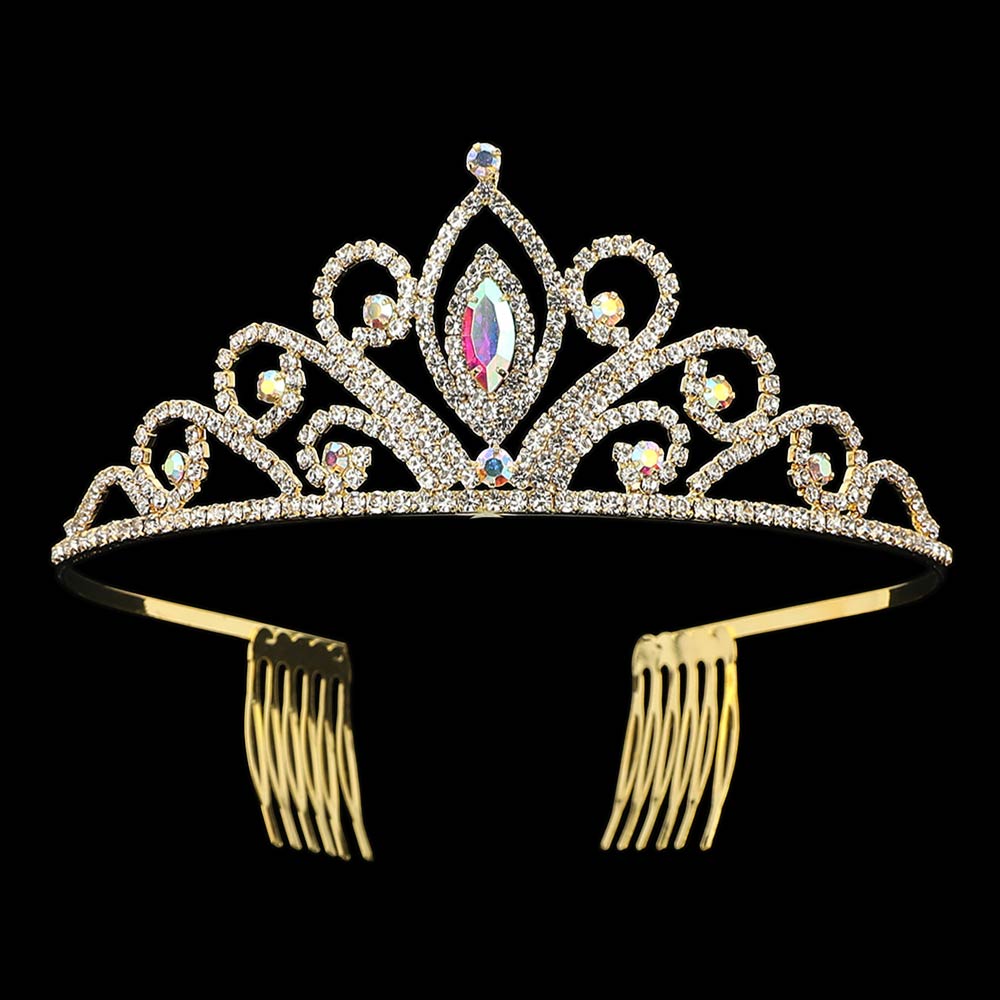 Marquise Stone Center Rhinestone Pave Princess Tiara