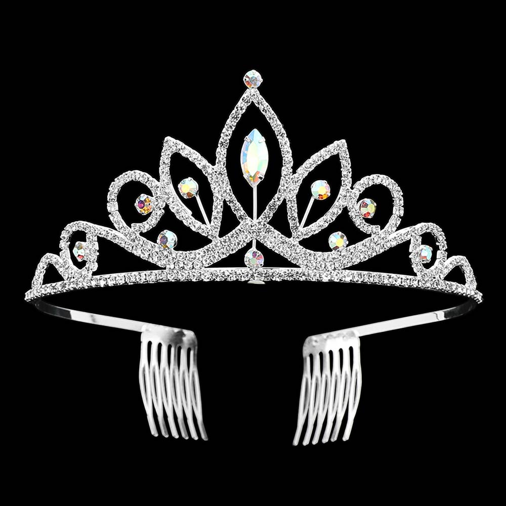 Marquise Stone Cluster Centered Rhinestone Pave Princess Tiara