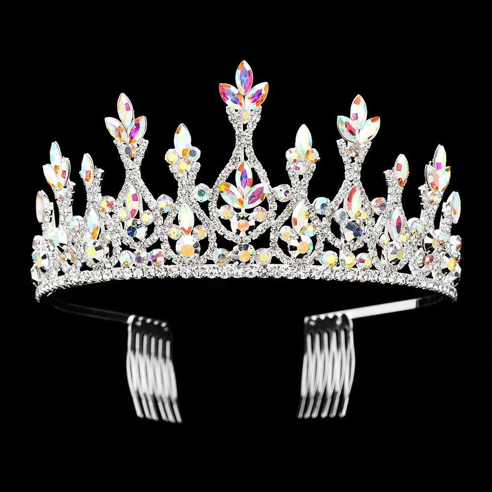 Marquise Stone Cluster Embellished Royal Crown Princess Tiara