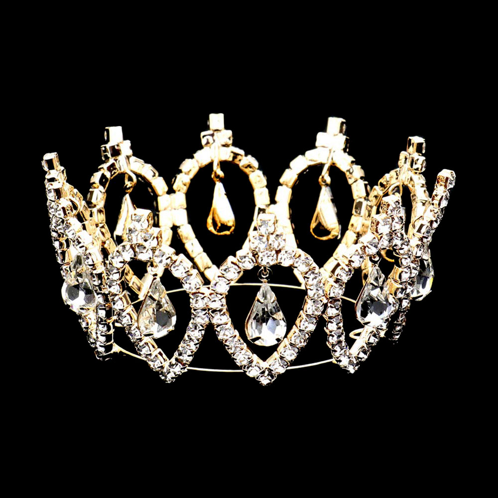 Pave Crystal Rhinestone Teardrop Dangle Mini Crown Tiara