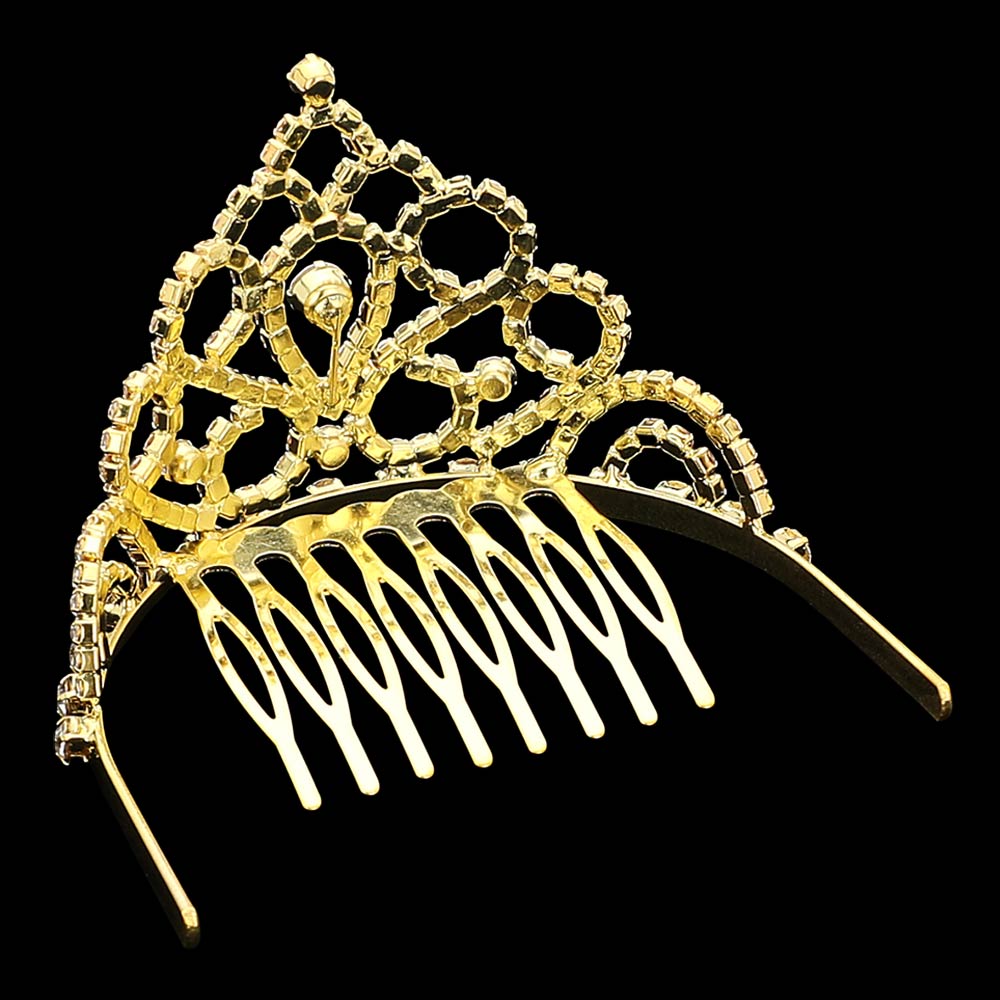 Round Stone Accent Rhinestone Paved Mini Princess Tiara