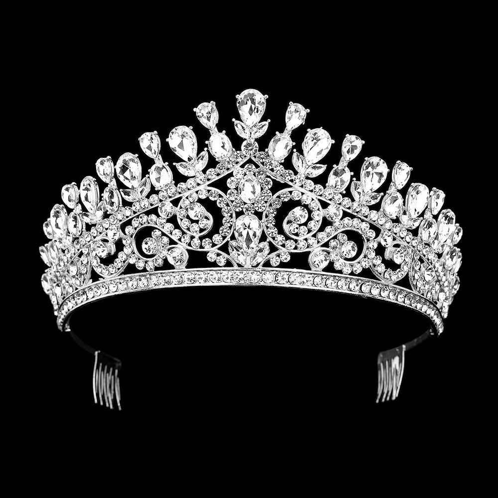 Teardrop Oval Stone Cluster Embellished Regal Scrollwork Queen Tiara