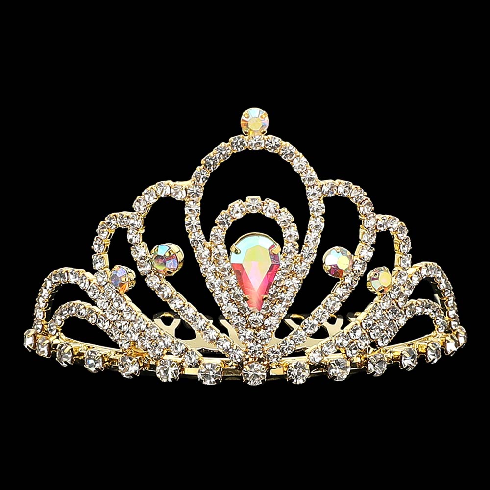 Teardrop Stone Accent Rhinestone Paved Mini Princess Tiara