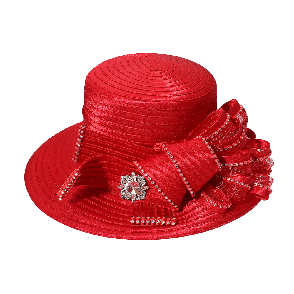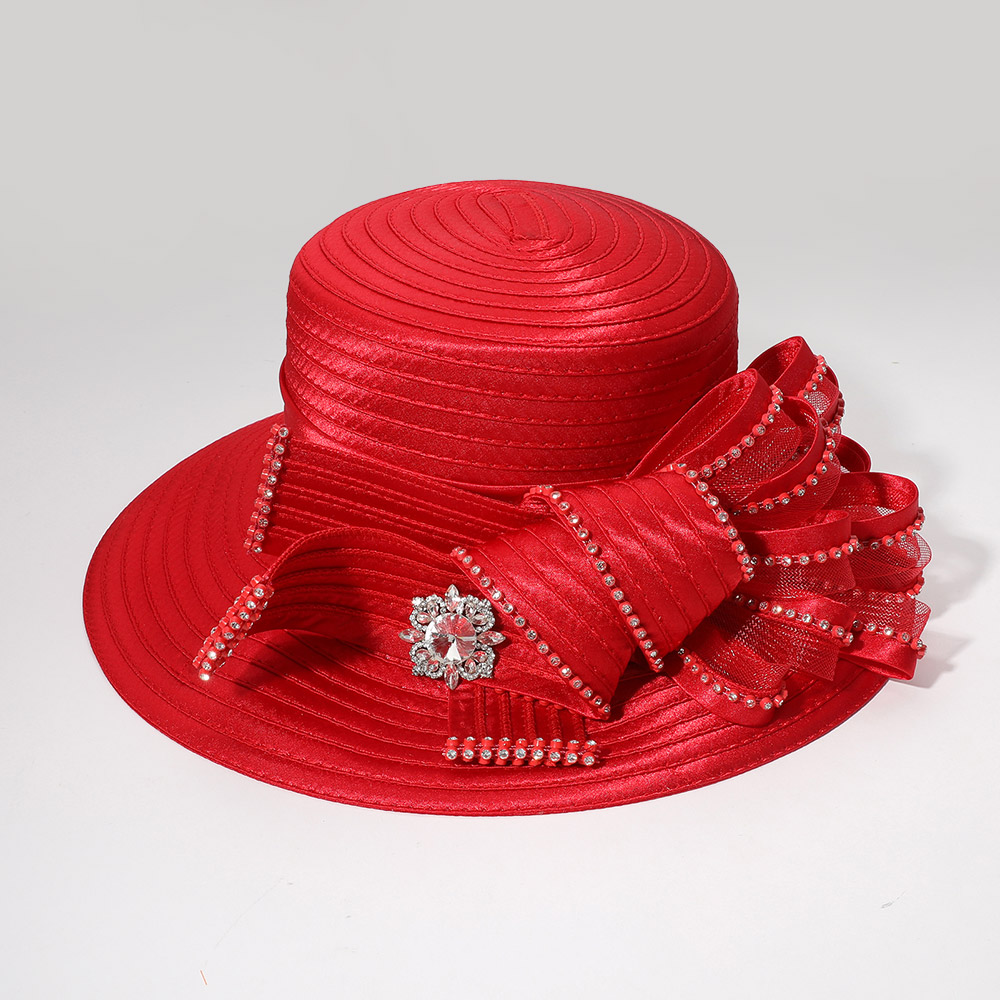 Rhinestone Embellished Flower Bow Pointed Dressy Hat
