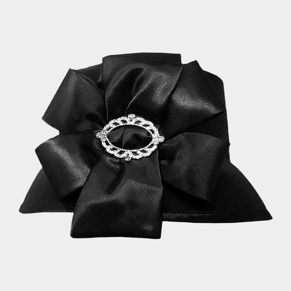 Stone Pointed Flower Ribbon Accented Dressy Hat