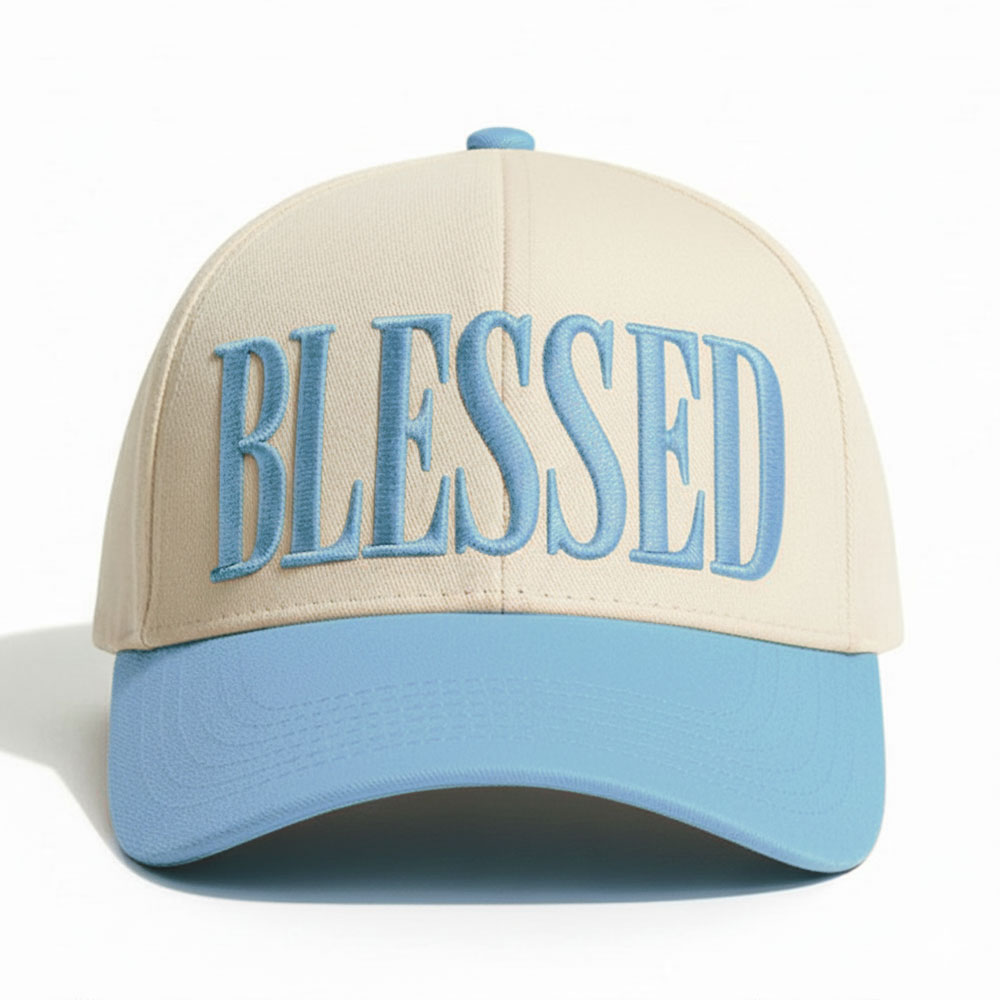 BLESSED Message Embroidered Five Panel Canvas Baseball Cap