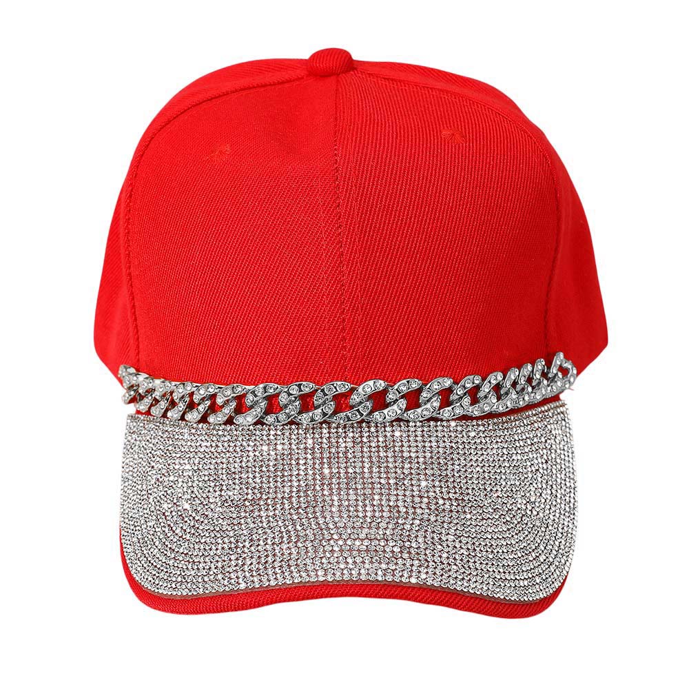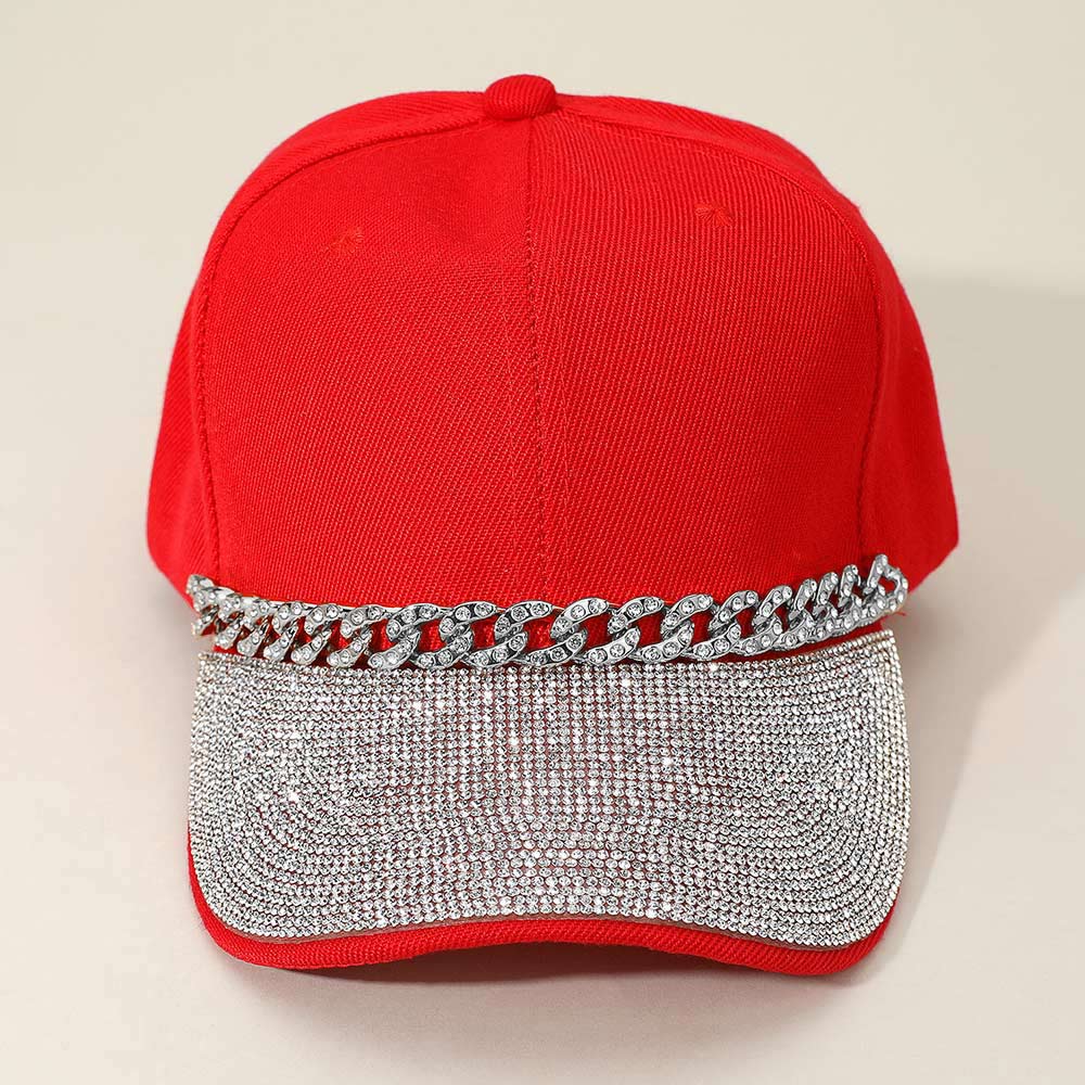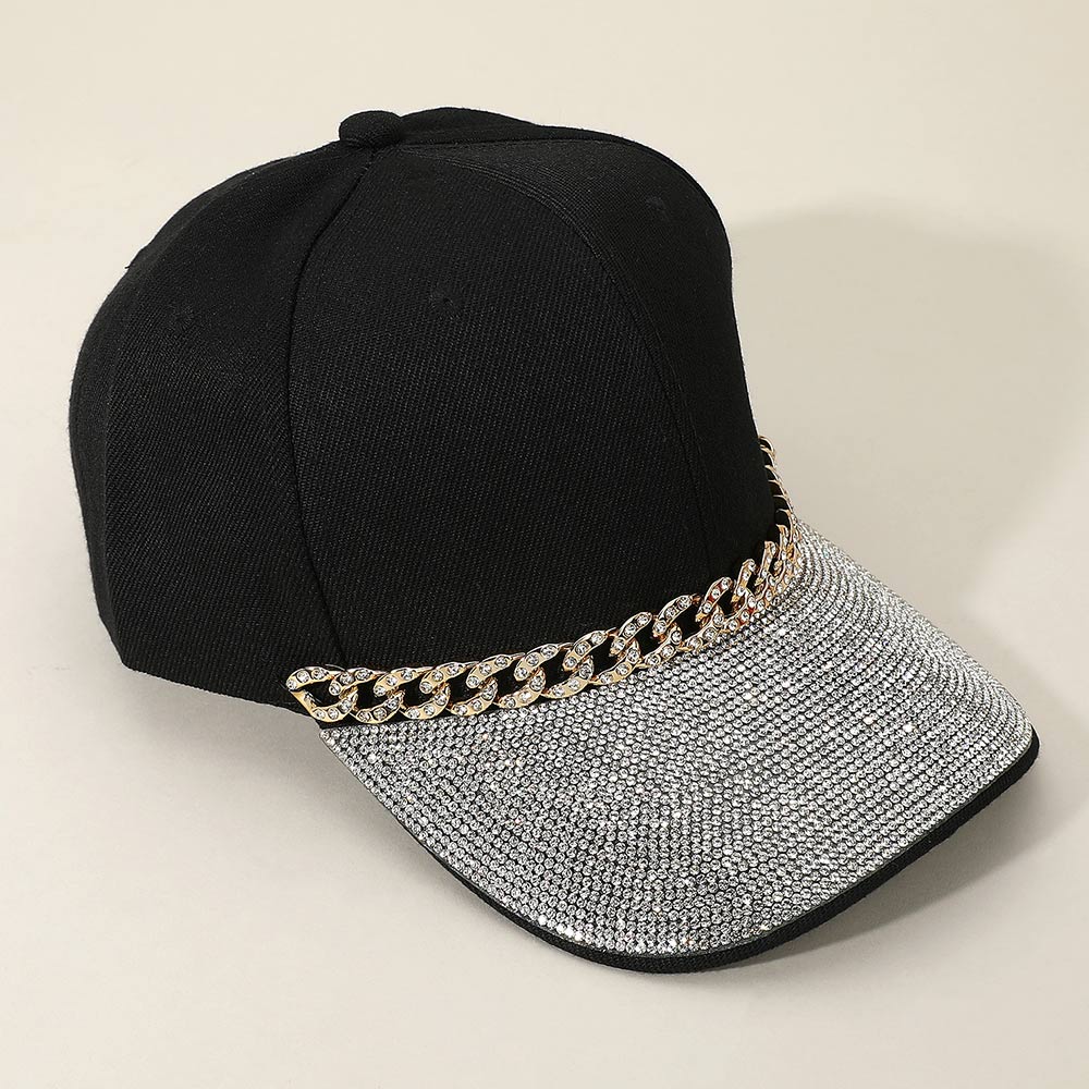Bling Studded Brim Chain Pointed Baseball Cap