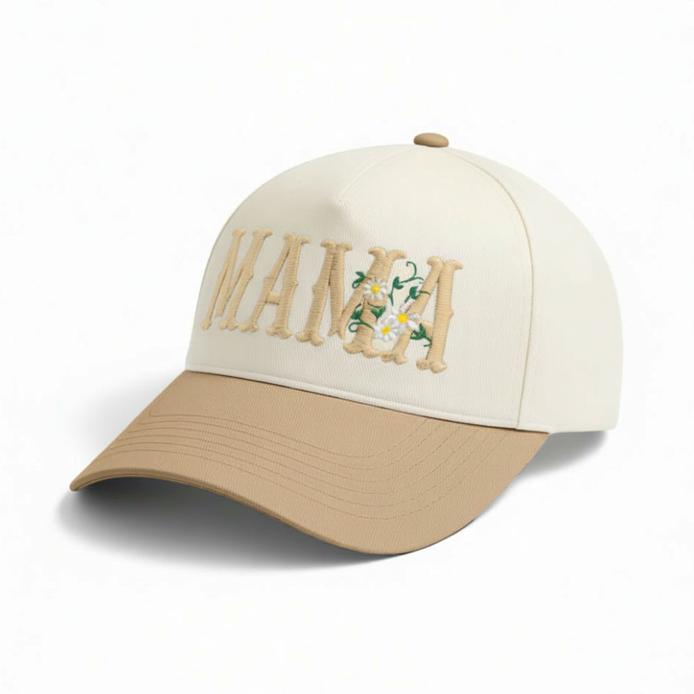 Floral MAMA Embroidered Five Panel Canvas Baseball Cap
