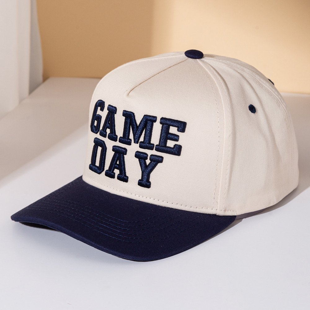 GAME DAY Message Embroidered Five Panel Canvas Snapback Baseball Cap