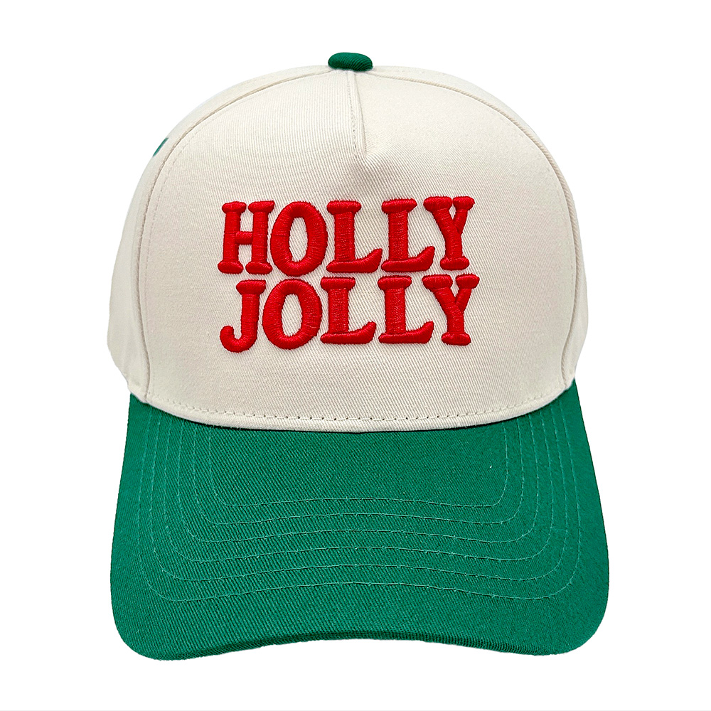 Details • Size : One Size Fits All - Adjustable Strap Makes Fit Comfortable • 5 Panel Canvas Cap : Adjustable Buckle Closure, Relaxed Fit and Pre-Curved Visor • Material : 100% Cotton • Festive trucker hat featuring bold “Holly Jolly” embroidery, perfect for holiday celebrations, parties, or casual winter outings. Designed for comfort and style, it adds cheerful charm to your seasonal wardrobe and spreads festive spirit everywhere you go.