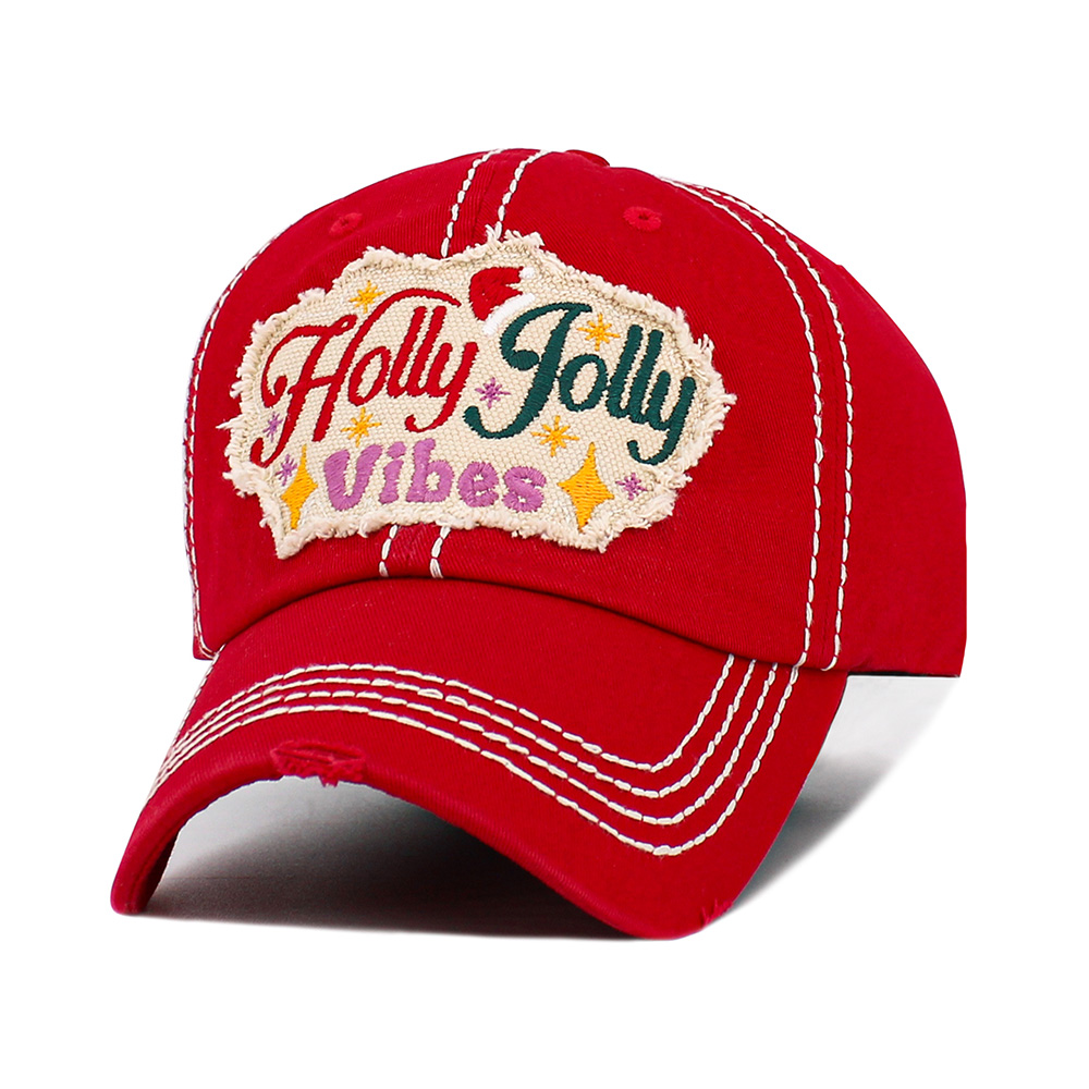 HOLLY JOLLY Vibes Message Embroidered Christmas Vintage Baseball Cap
