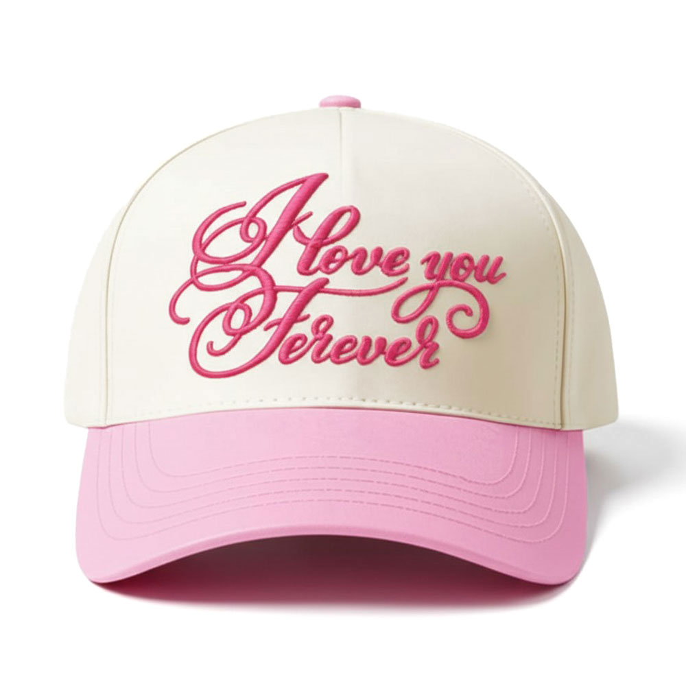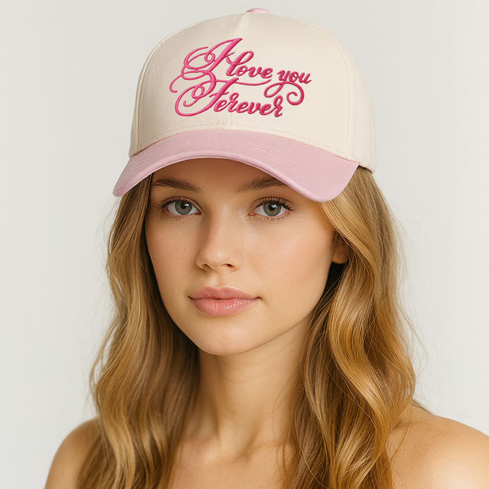 Details • Size : One Size Fits All - Adjustable Strap Makes Fit Comfortable • 5 Panel Canvas Cap : Adjustable Buckle Closure, Relaxed Fit and Pre-Curved Visor • Material : 100% Cotton • Show your love in style with this “I Love You Forever” baseball cap featuring elegant embroidered lettering that makes a bold, heartfelt statement. Perfect for everyday wear, gifting, or showing affection on special occasions. A meaningful and stylish accessory that adds personality to casual looks while celebrating love in a unique and expressive way.